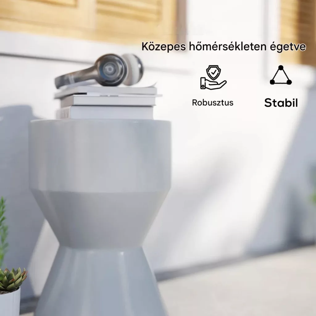 A tartós, közepes hőmérsékleten égetett kerámia ülőke akár 120 kg teherbírást biztosít. Az alján található csúszásgátló talpak növelik a stabilitást és védik a burkolatot.