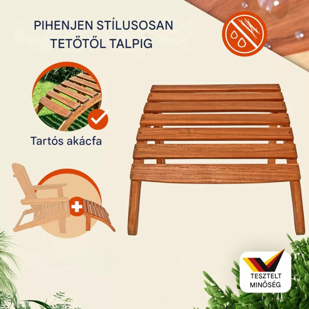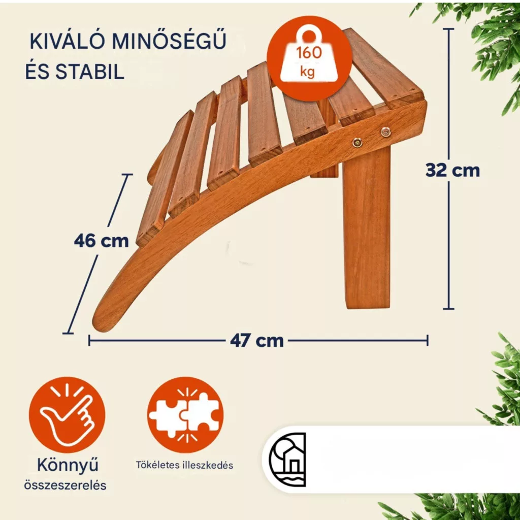 A fa lábtartó kerti bútorhoz hosszú távon is megbízható választás.