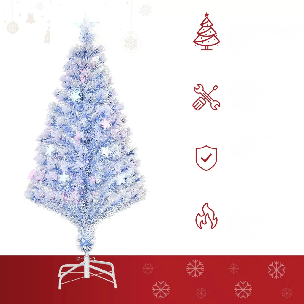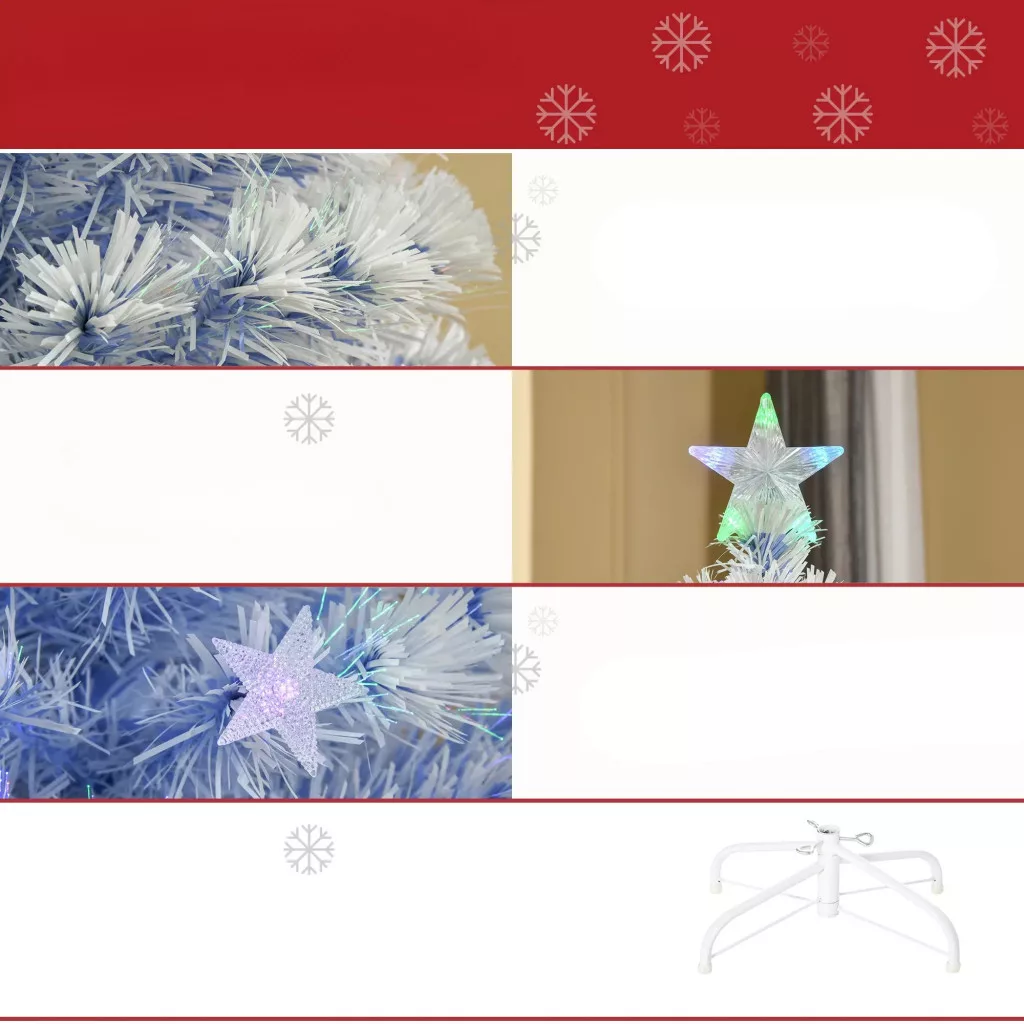 A műfenyő PVC ágakkal, 16 db LED-del, valamint több színben váltakozó fényvezető üvegszálakkal rendelkezik, amelyek egyszerre biztosítják a hangulatos, mégis energiatakarékos fényáradatot. Az összecsukható ágaknak köszönhetően az össze- és szétszerelés gyors és egyszerű, a stabil fém talp pedig biztos tartást nyújt egész ünnepi időszakban.
