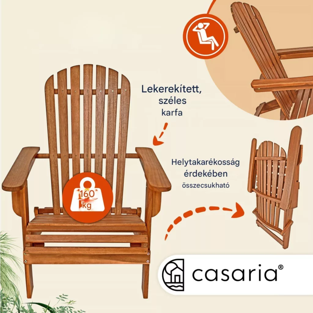 Ez a akácfa kerti pihenőszék ideális választás, ha Ön tartós, kényelmes és helytakarékos kültéri bútort keres. A praktikus kialakítás és a természetes anyaghasználat garantálja a hosszú távú elégedettséget.