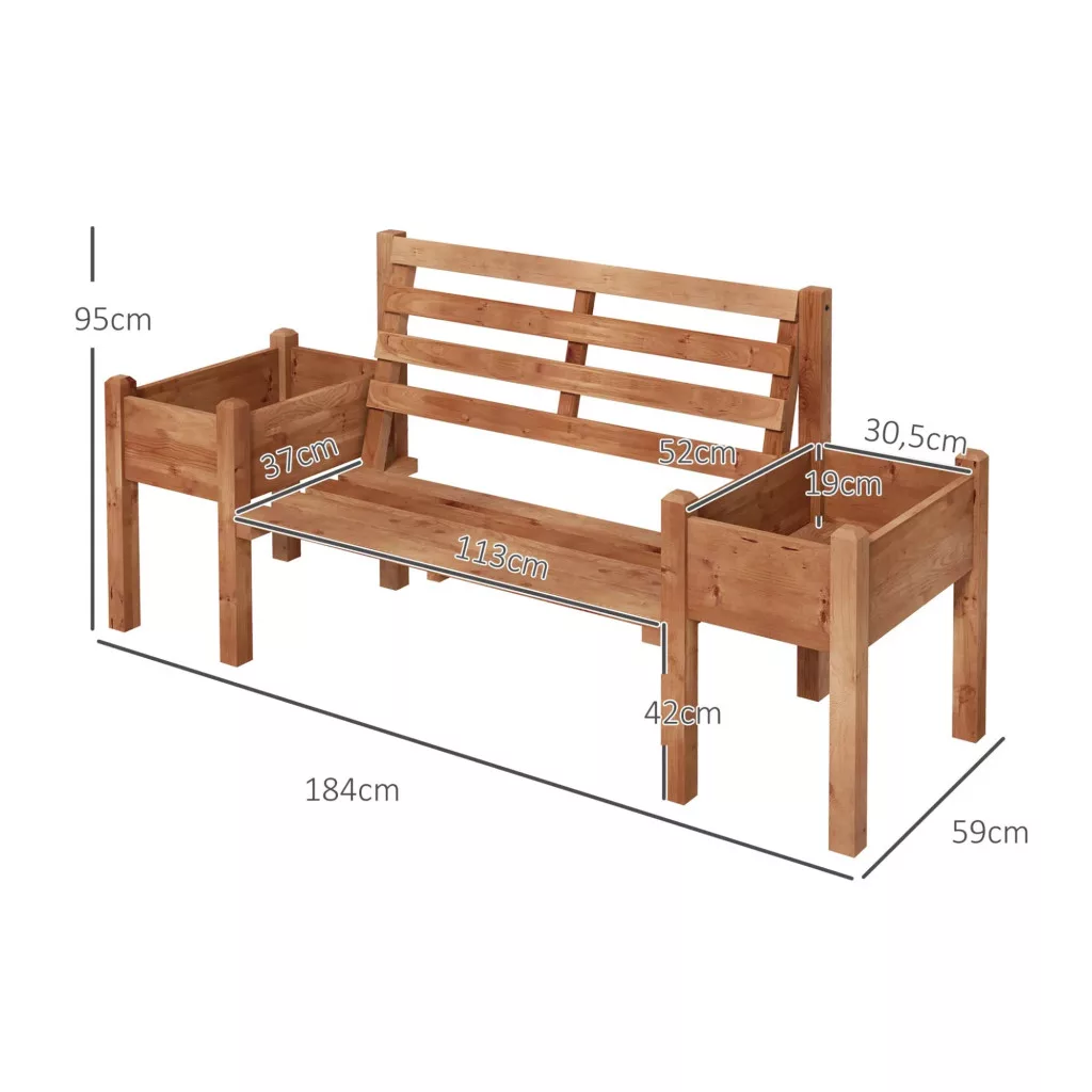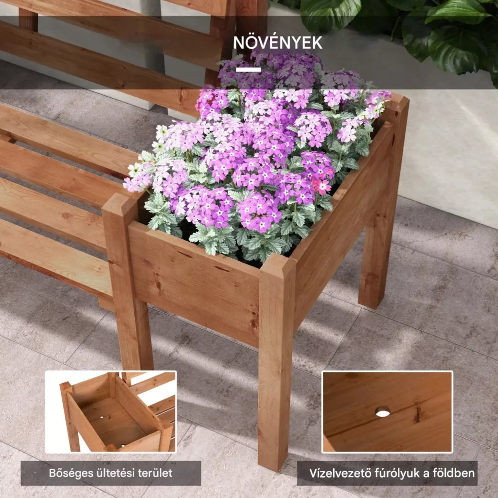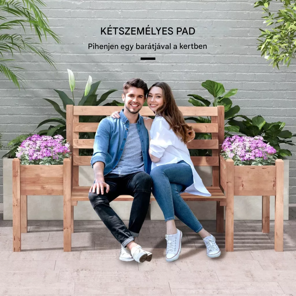 Kerti pad virágládával 184x59x95 cm 2 személyes fa kerti pad beépített növénytartóval barna
