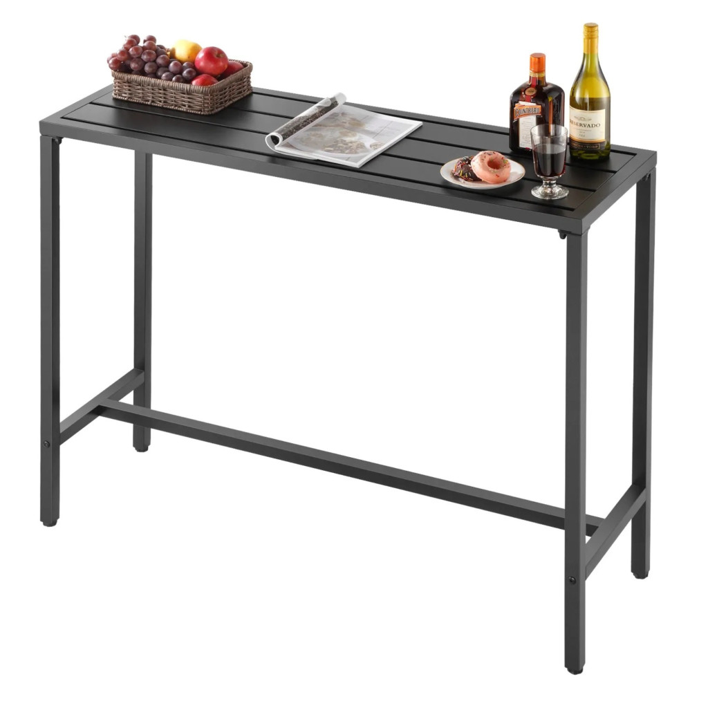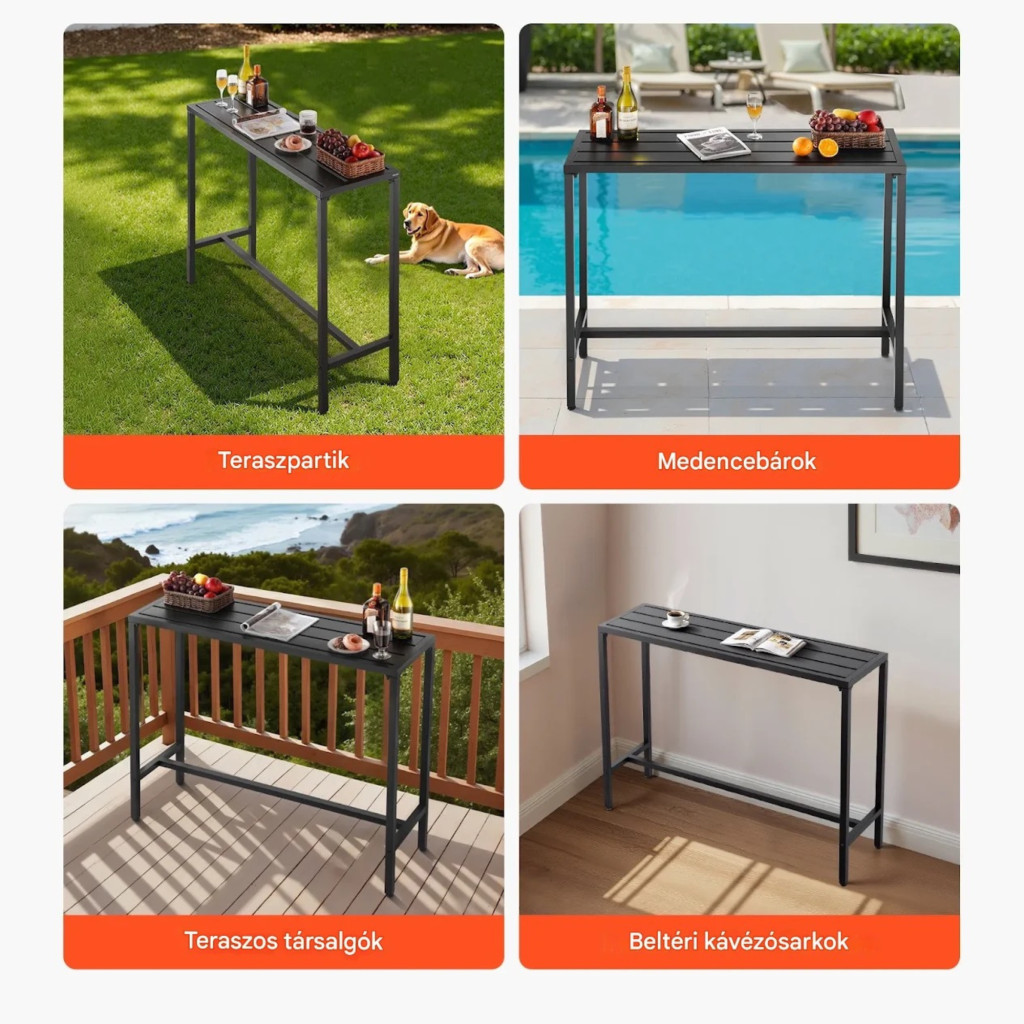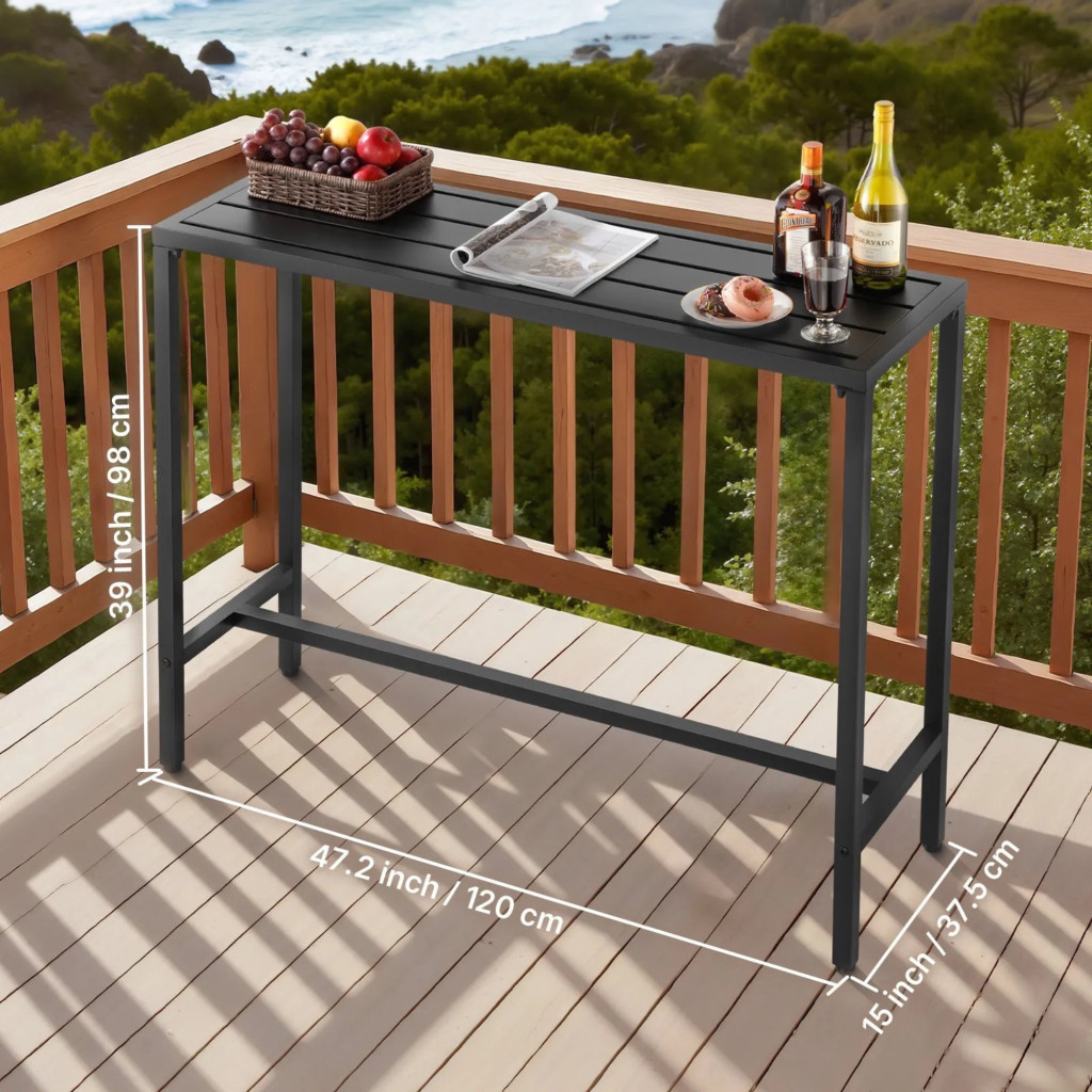 Kerti bárasztal 1200x375x980 mm hosszúkás bisztróasztal fekete, modern álló asztal 2–4 fő részére