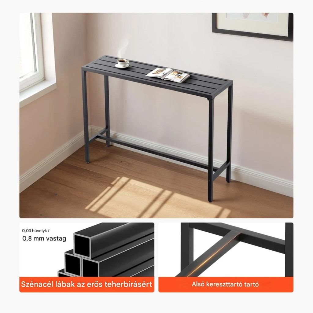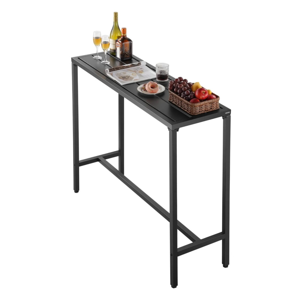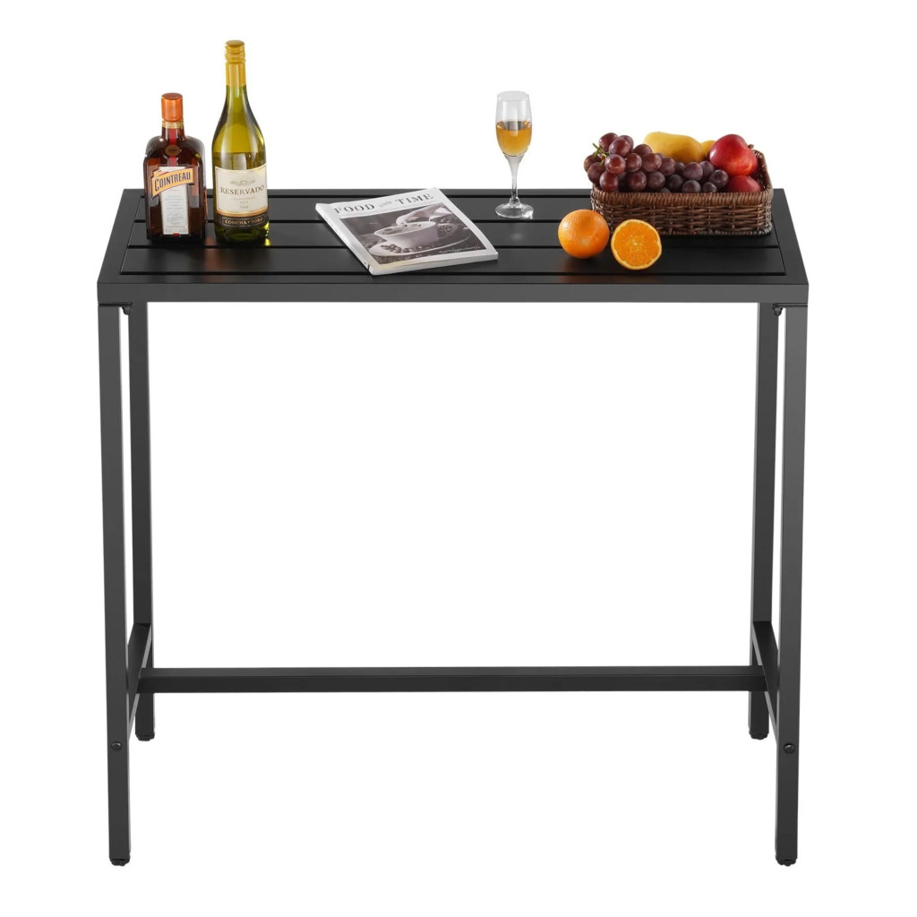 Kerti bárasztal 1200x375x980 mm hosszúkás bisztróasztal fekete, modern álló asztal 2–4 fő részére