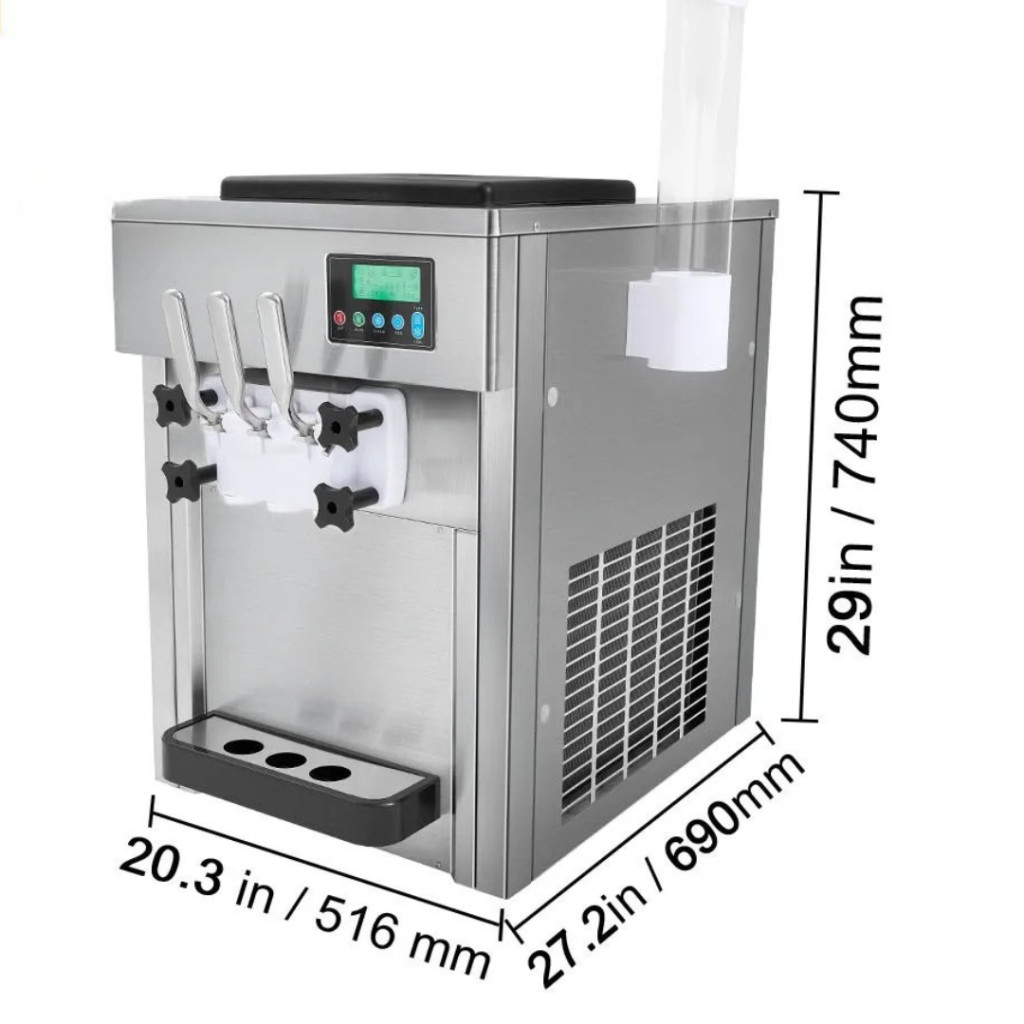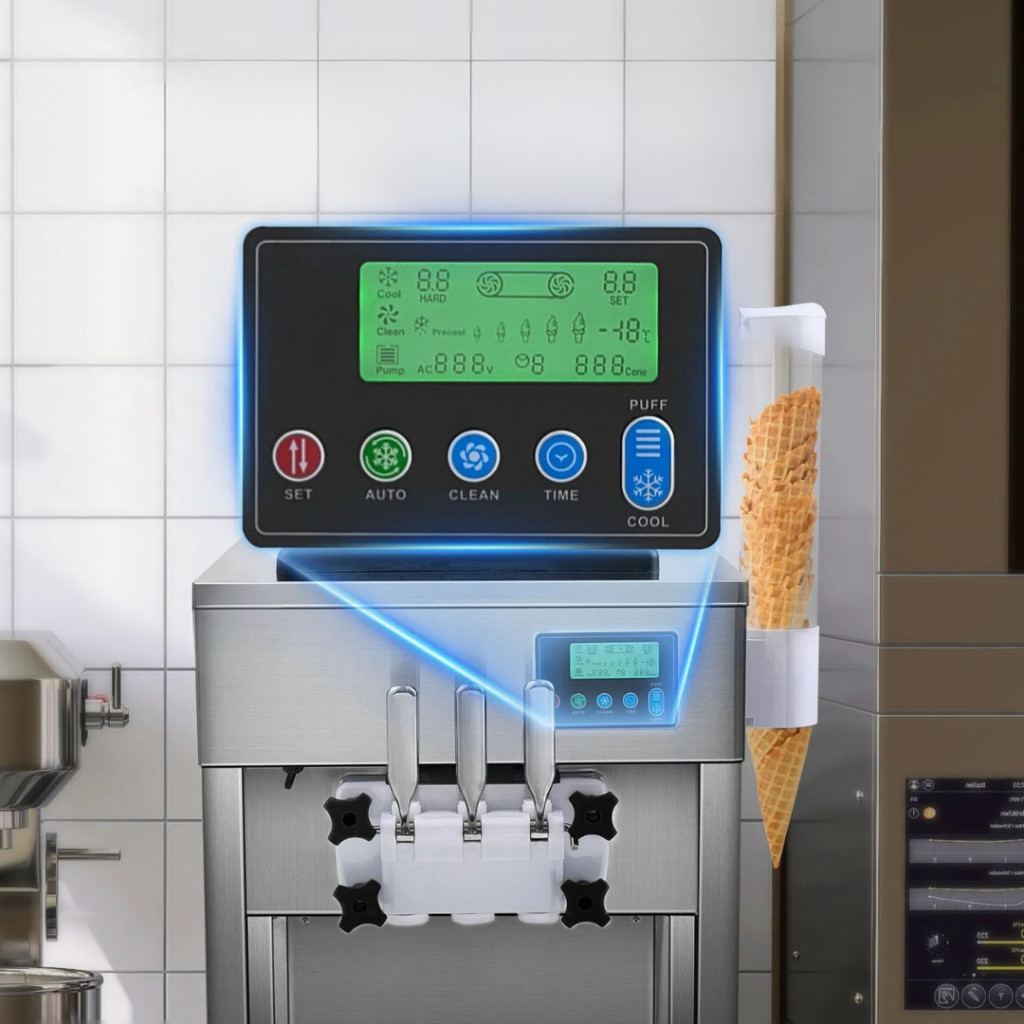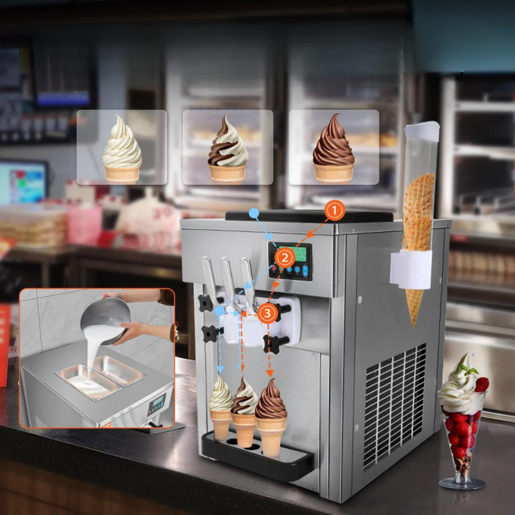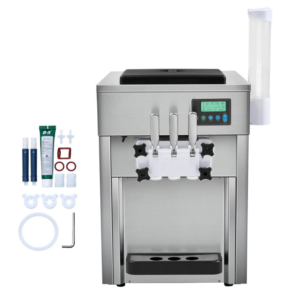 Csavaros fagyigép 1800W 3 íz, asztali fagylaltkészítő LCD vezérlés, automata tisztítás és előhűtés