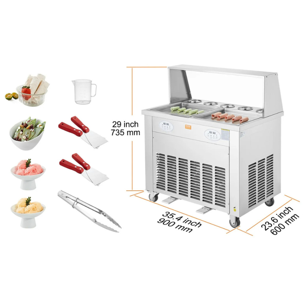 Fagyigép jégkrémtekercsekhez dupla 38x38 cm fagyasztófelülettel thai tekercses fagyi készítő