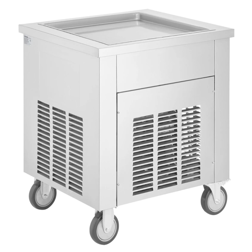 Fagylaltgép mélyhűtött fagylalt tekercsekhez 50x50 cm rozsdamentes acél munkafelülettel thai tekercses fagyi készítő