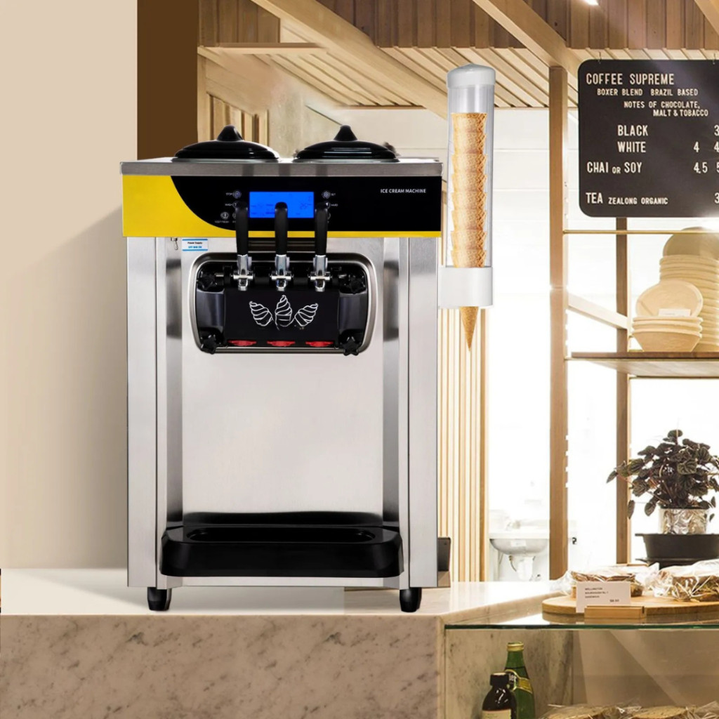Fagylaltgép 2200W professzionális 3 ízesítőfejes csavaros fagyigép 22–30 liter/óra kapacitással, LCD-kijelzővel