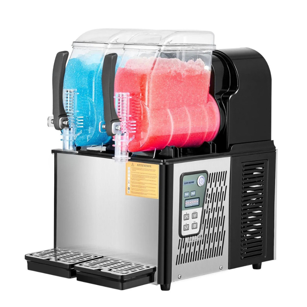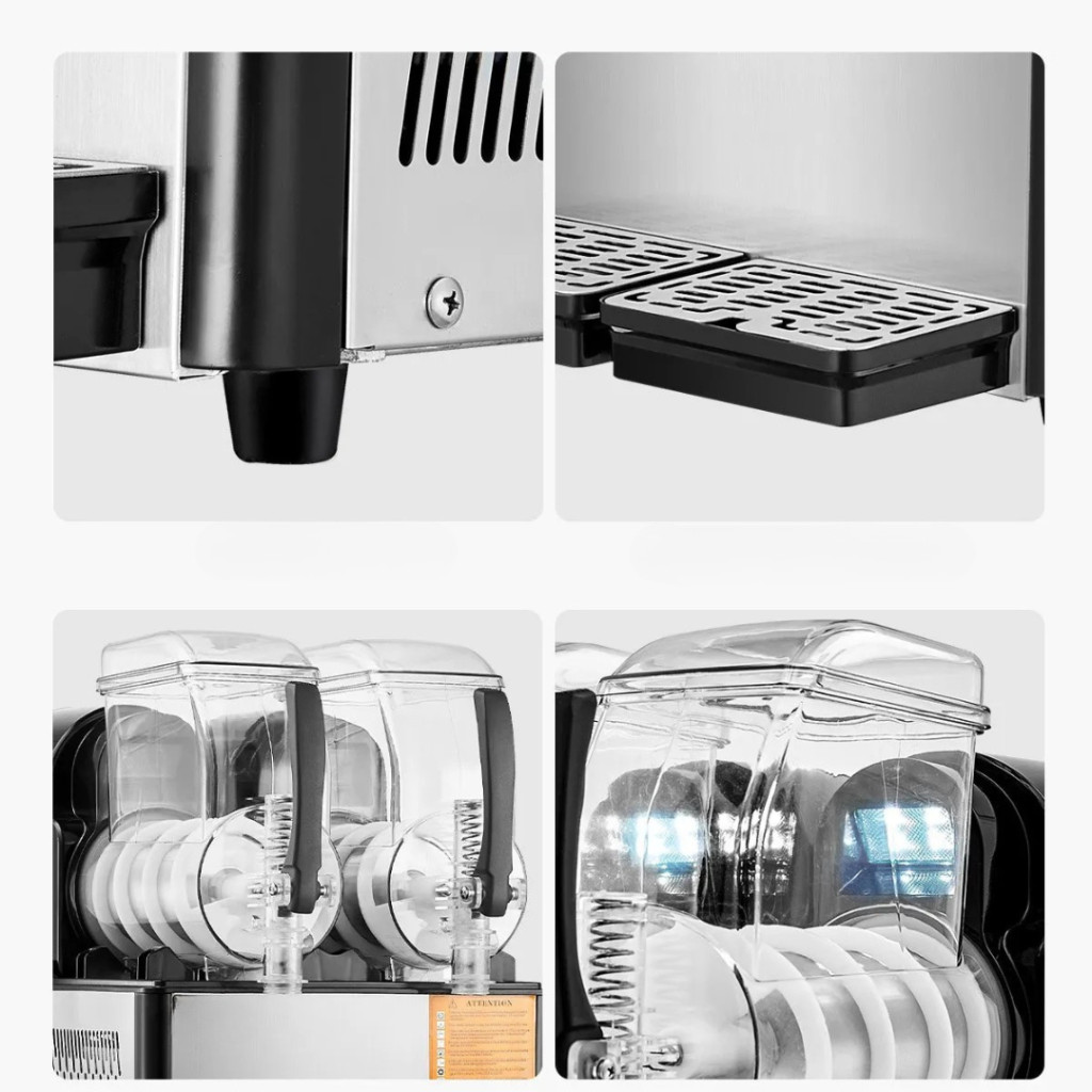 Ez a prémium minőségű, vendéglátóipari jégkása készítő gép ideális megoldás kávézók, bárok, éttermek, cukrászdák, fagylaltozók és rendezvényszervezők számára. Két darab, egyenként 4 literes átlátszó tartályával egy töltéssel akár 32 adag frissítő italt készíthet, legyen szó gyümölcslevekről, jégkásáról, margarita koktélokról, jeges teáról vagy jeges kávéról.
