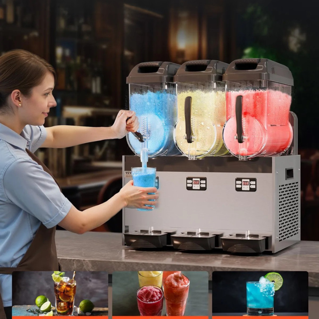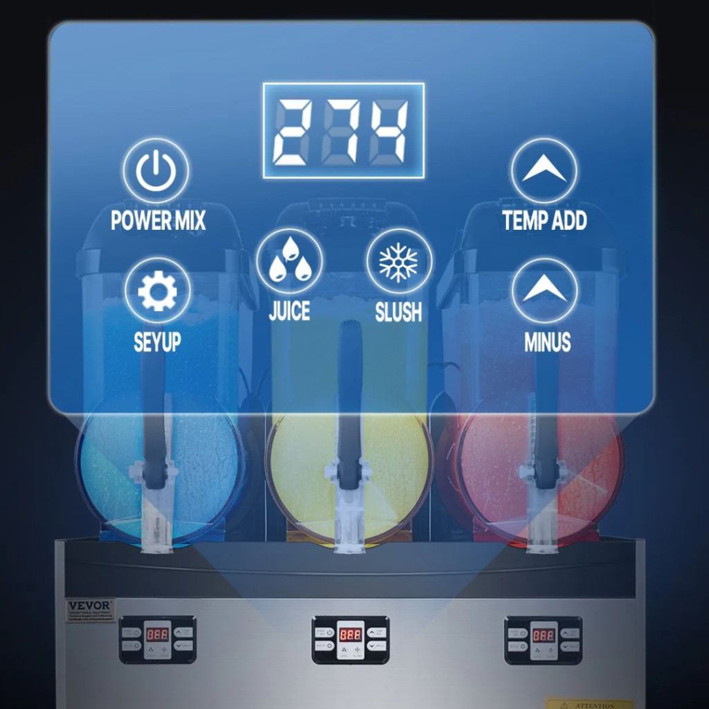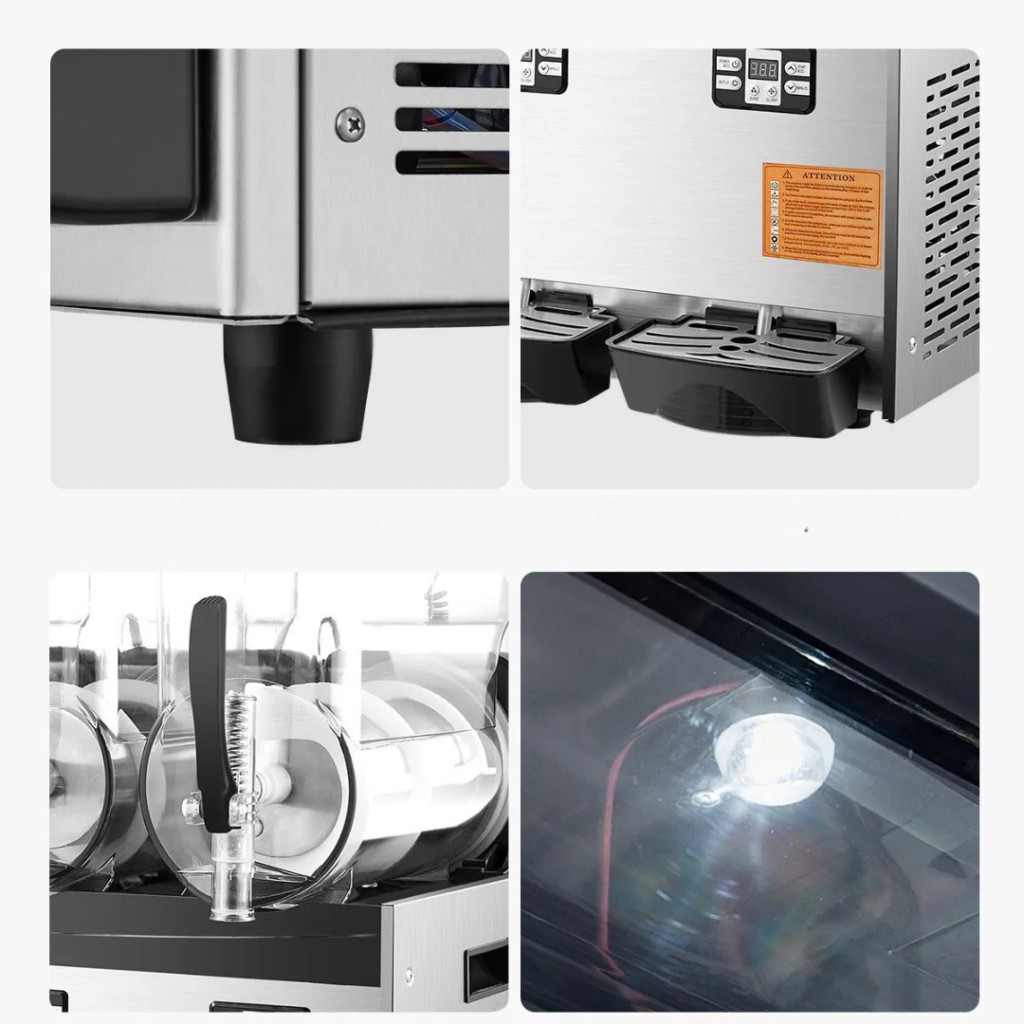 Ez a kereskedelmi minőségű jégkása készítő gép tökéletes választás bárok, cukrászdák, kávézók, éttermek, mozik, rendezvényhelyszínek és fesztiválok számára. Három független tartályának köszönhetően egyszerre többféle hűsítő ital készíthető, legyen szó jégkásáról, smoothieról, jeges koktélról vagy frissítő üdítőitalokról.