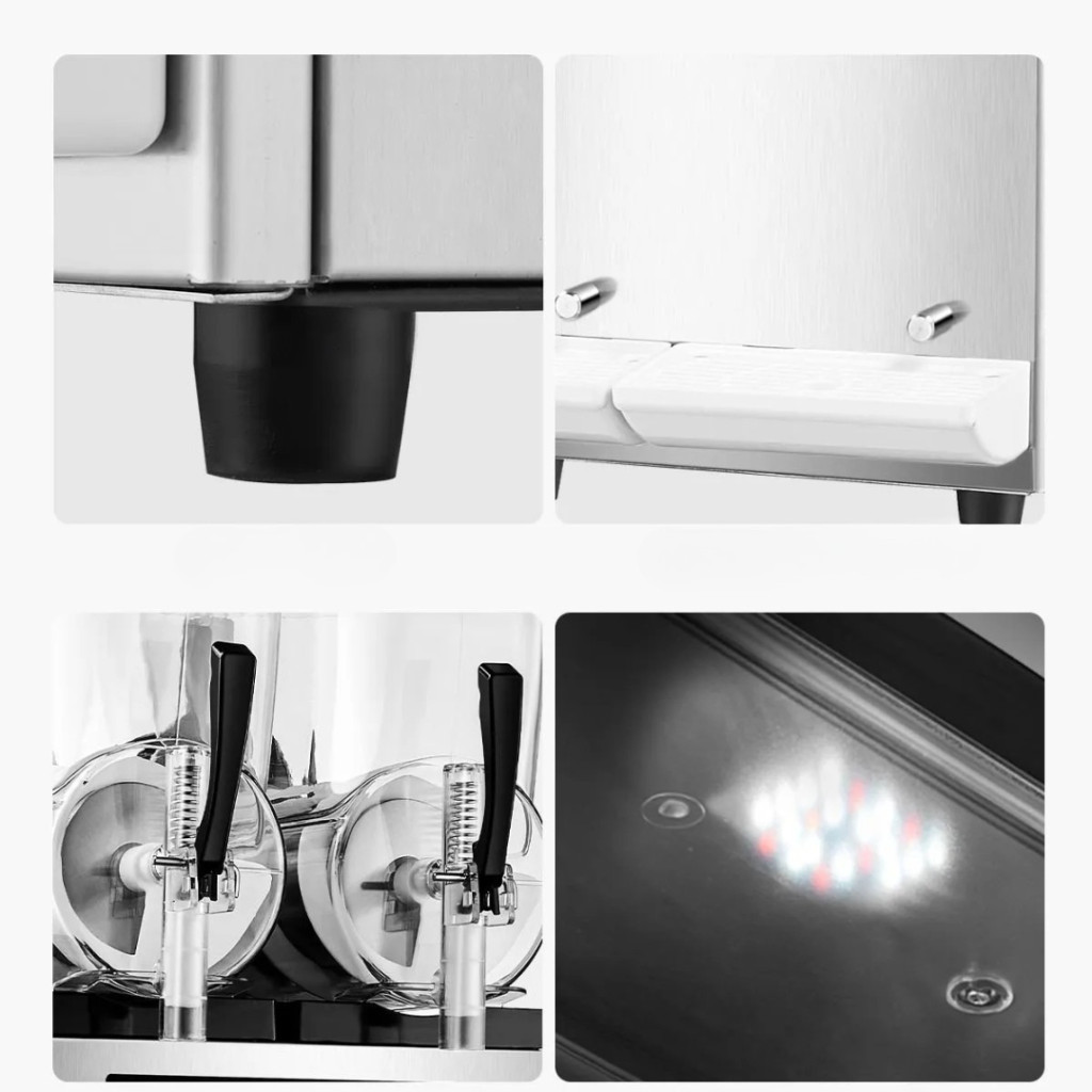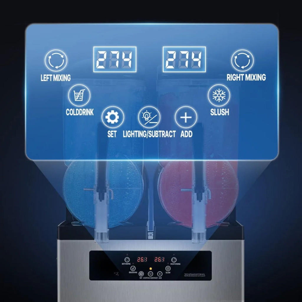 Ez a kereskedelmi minőségű jégkása készítő gép ideális választás bárok, kávézók, éttermek, cukrászdák, mozik, fesztiválok és rendezvények számára. Két különálló, 12 literes tartállyal rendelkezik, amelyek függetlenül vezérelhetők, így egyszerre többféle ital is készíthető – legyen az jégkása, smoothie, jeges koktél vagy frissítő hideg ital.