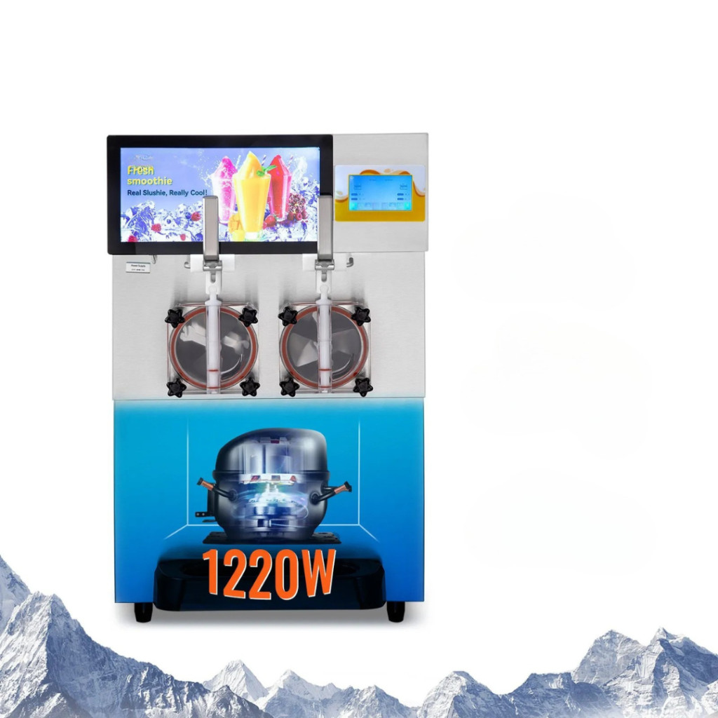 A 1220 W-os kompresszor és a fejlett hűtőrendszer gyors és energiatakarékos működést biztosít. A halk üzem mellett a folyamatos keverés megakadályozza a jég lerakódását, így az ital mindig homogén és kellemes állagú marad.