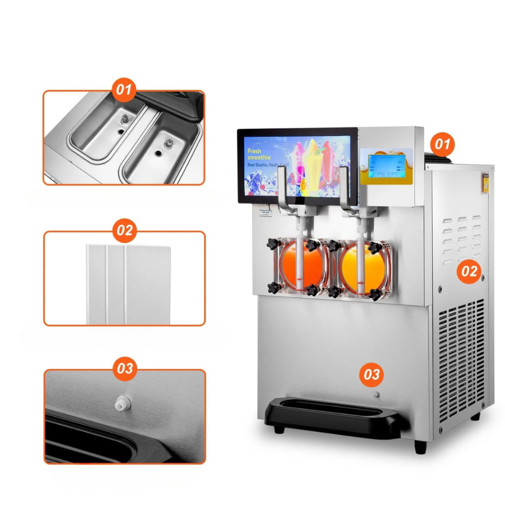 Mindkét tartály 8 literes, így összesen 16 liter ital készíthető egyszerre. Óránként akár 26–32 liter jégkása vagy 15–21 liter alkoholos ital állítható elő, így nagy forgalmú helyeken is biztosított a gyors kiszolgálás. A vorkühlési funkciólehetővé teszi az alapanyagok előhűtését, míg a konzerváló üzemmód éjszaka is frissen tartja az italokat, megőrizve azok ízét és állagát.