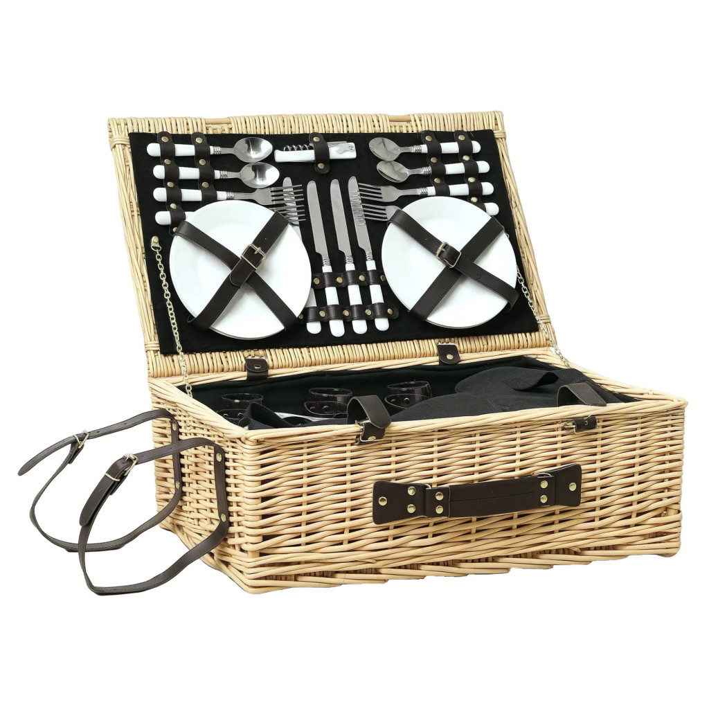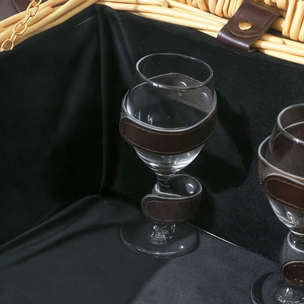 Fonott piknikkosár hűtőrekesszel 4 személyes komplett piknikkészlet, natúr fa megjelenéssel