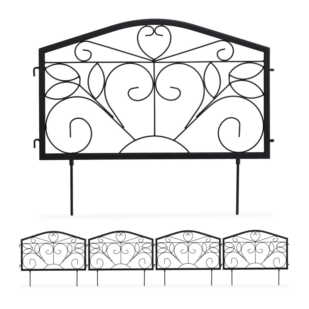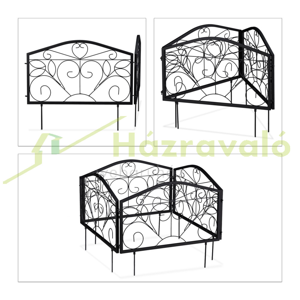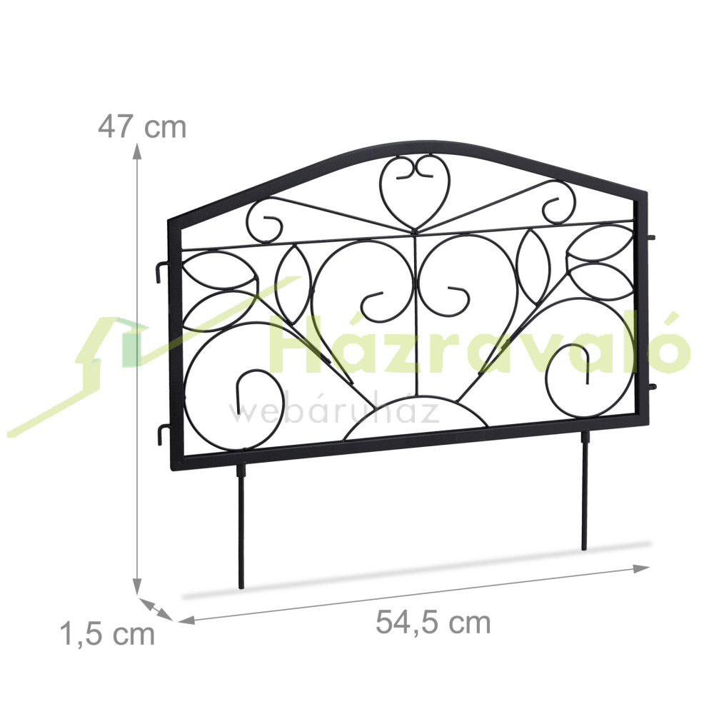 Kerti dekor kerítés 47x54,5x1,5 cm fém vintage kerítéspanel fekete virágyágyás szegély leszúrható ágyásszegély