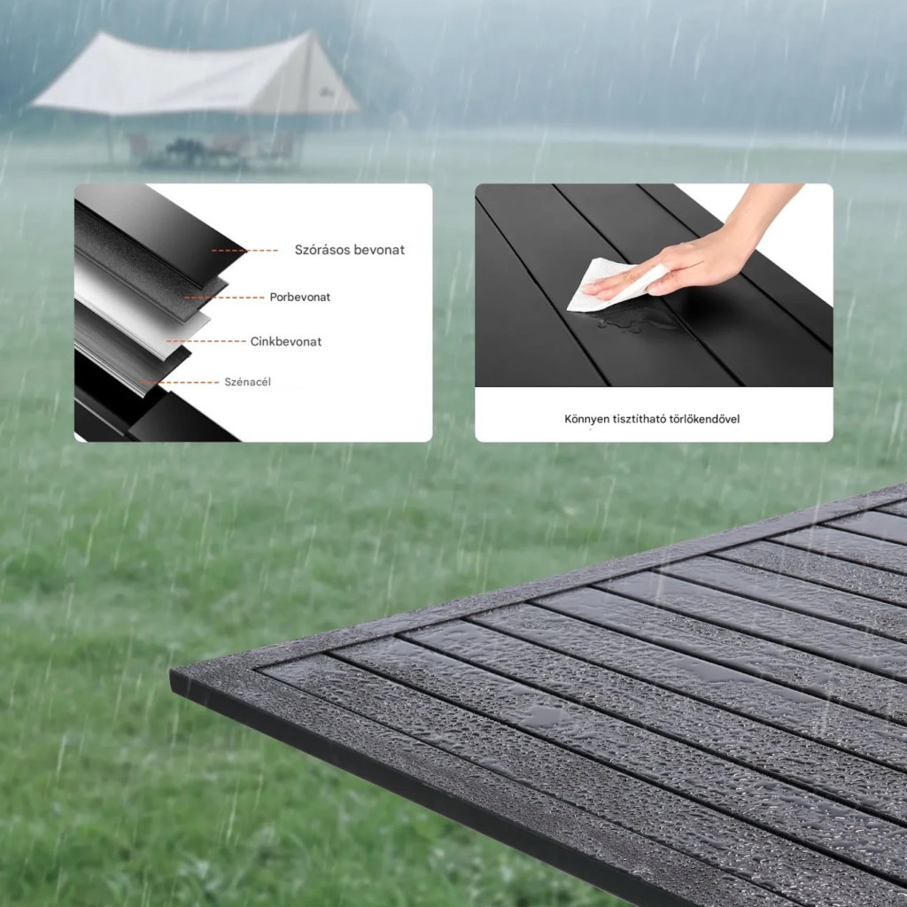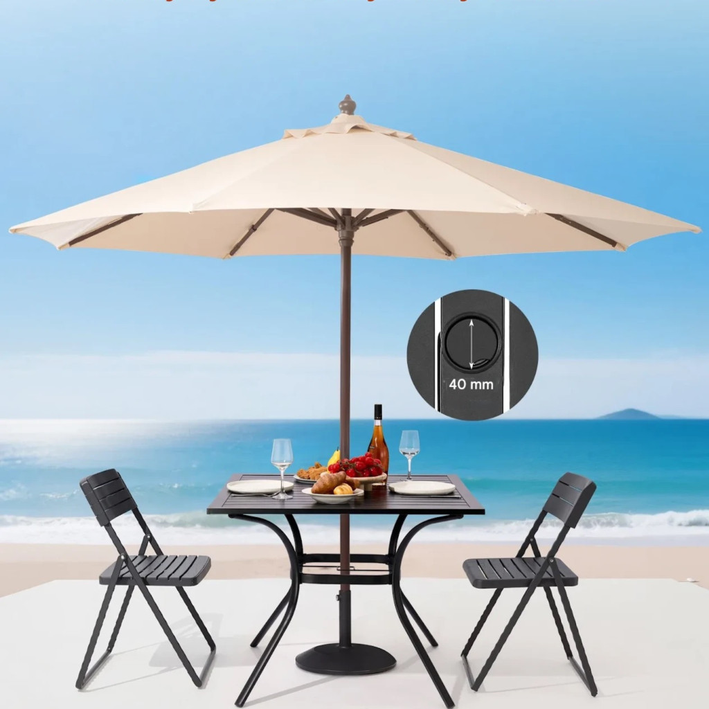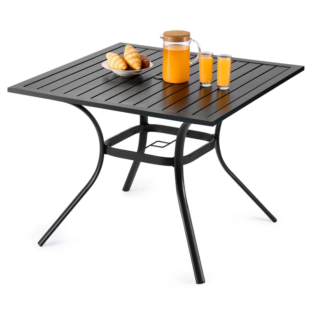Kerti asztal 94x94 cm négyzet alakú kültéri étkezőasztal vízálló, napernyőnyílással 68 kg teherbírás, fekete
