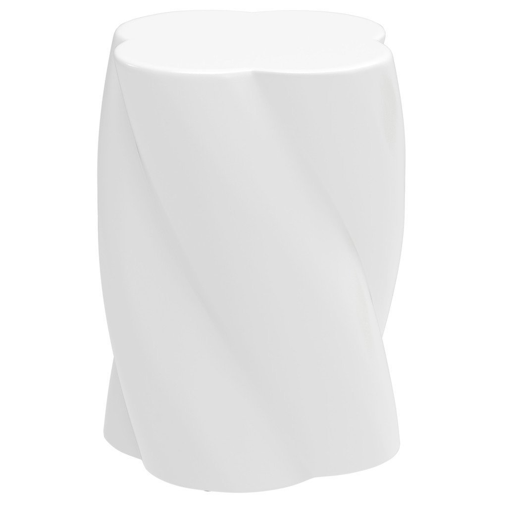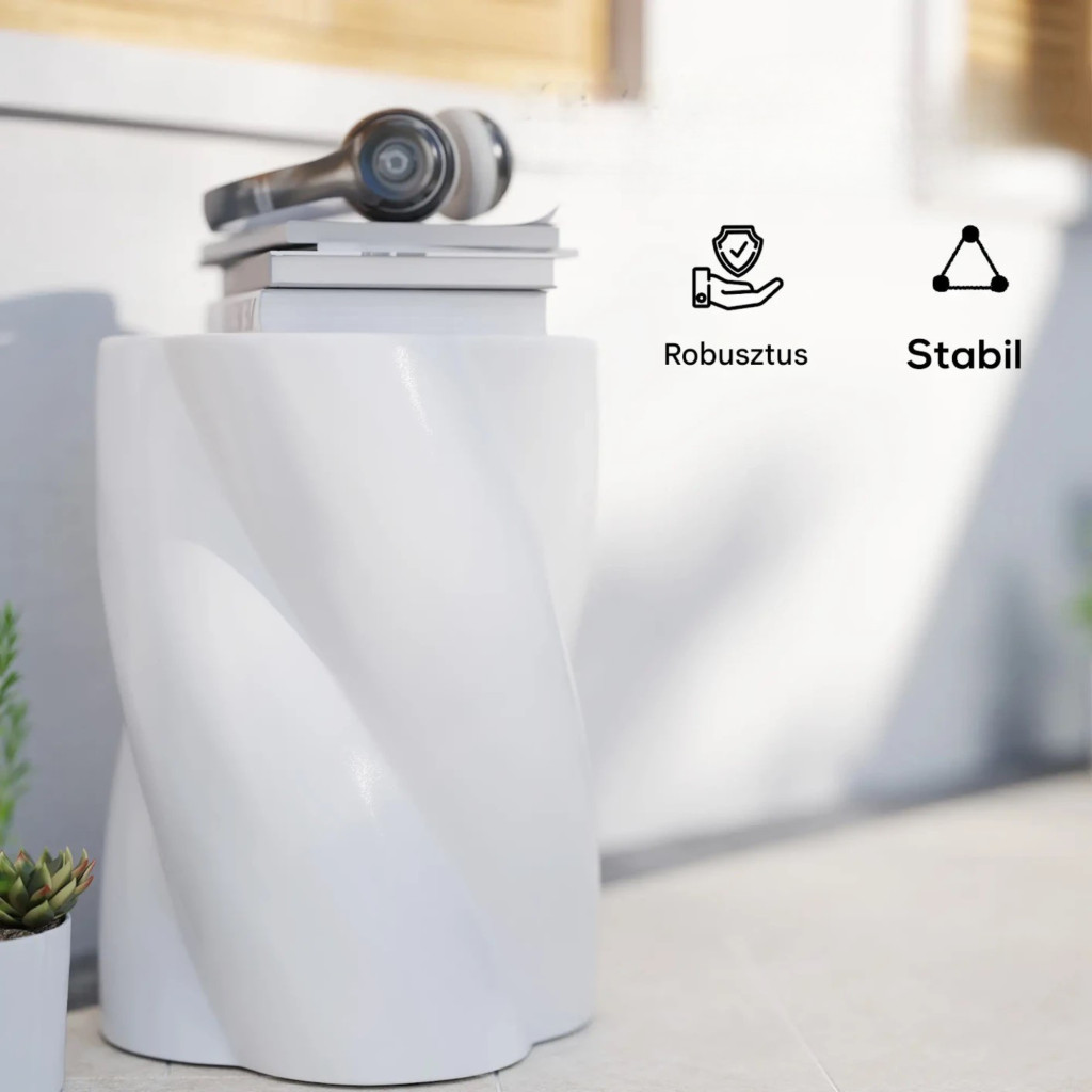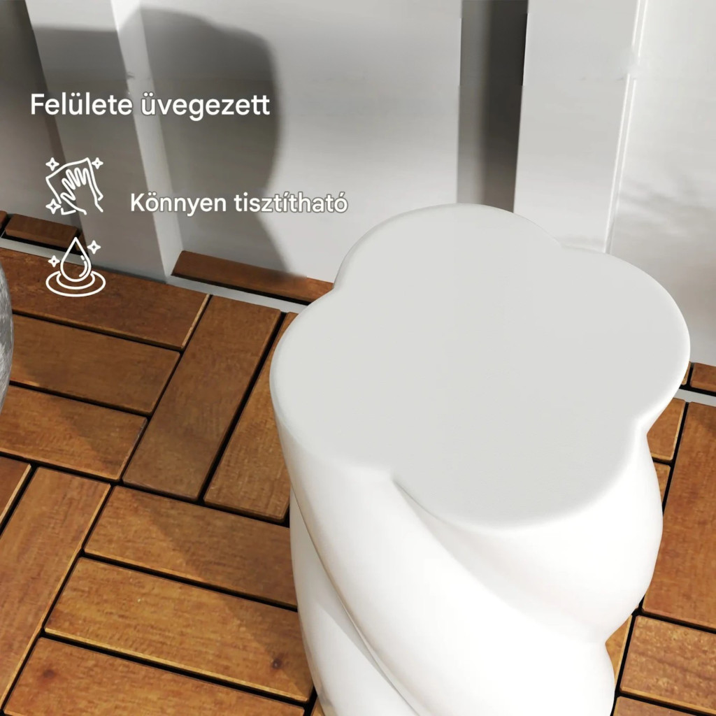 Kerámia kerti ülőke fedéllel Ø33x45 cm spirál mintás dekor hokedli, fehér 120 kg teherbírás időjárásálló kerti zsámoly