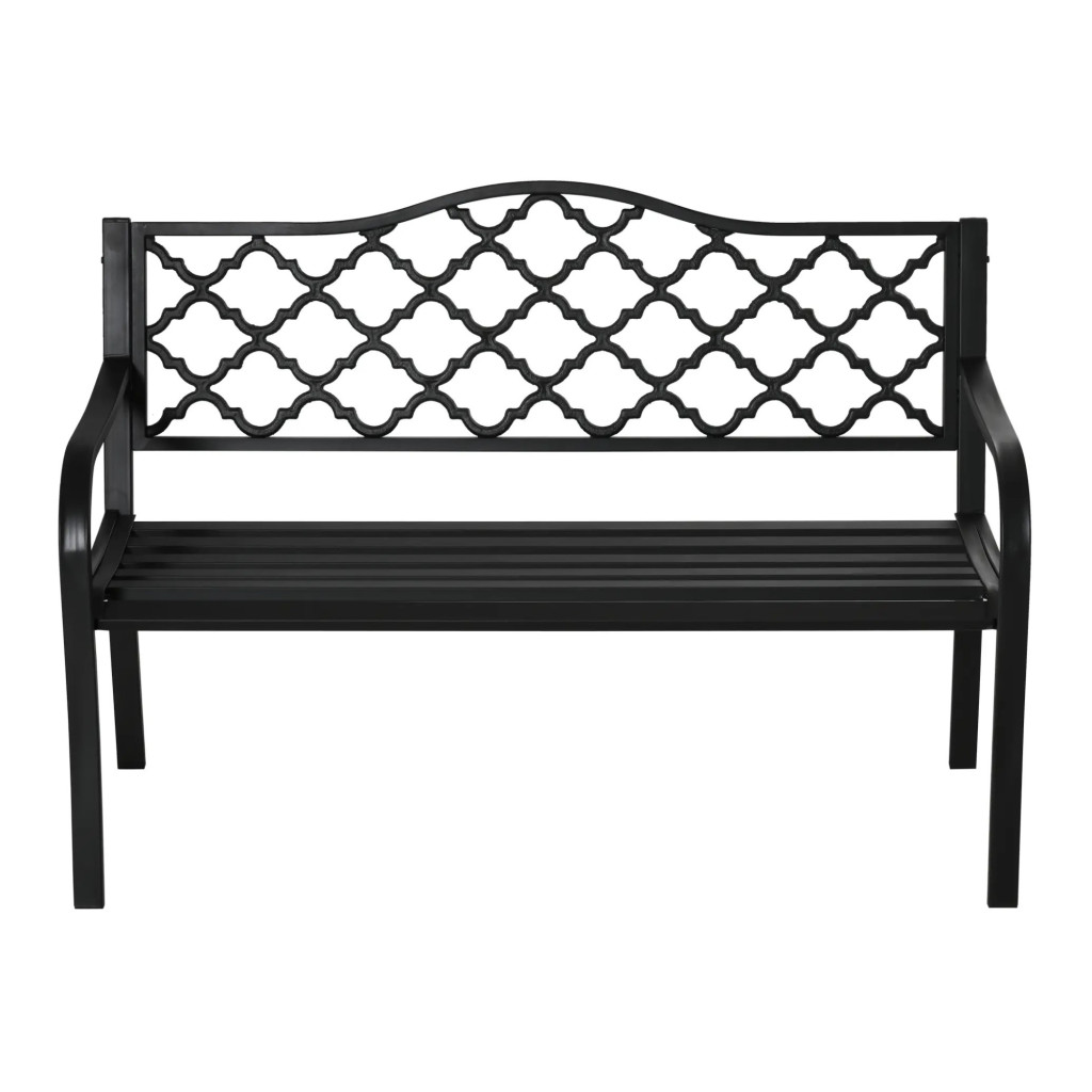 Öntöttvas kerti pad 2 személyes fém pad háttámlával antik stílusú 240 kg teherbírás kerti bútor 128x58,5x89 cm fekete