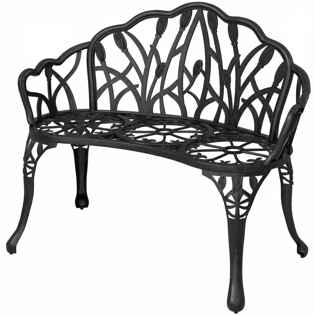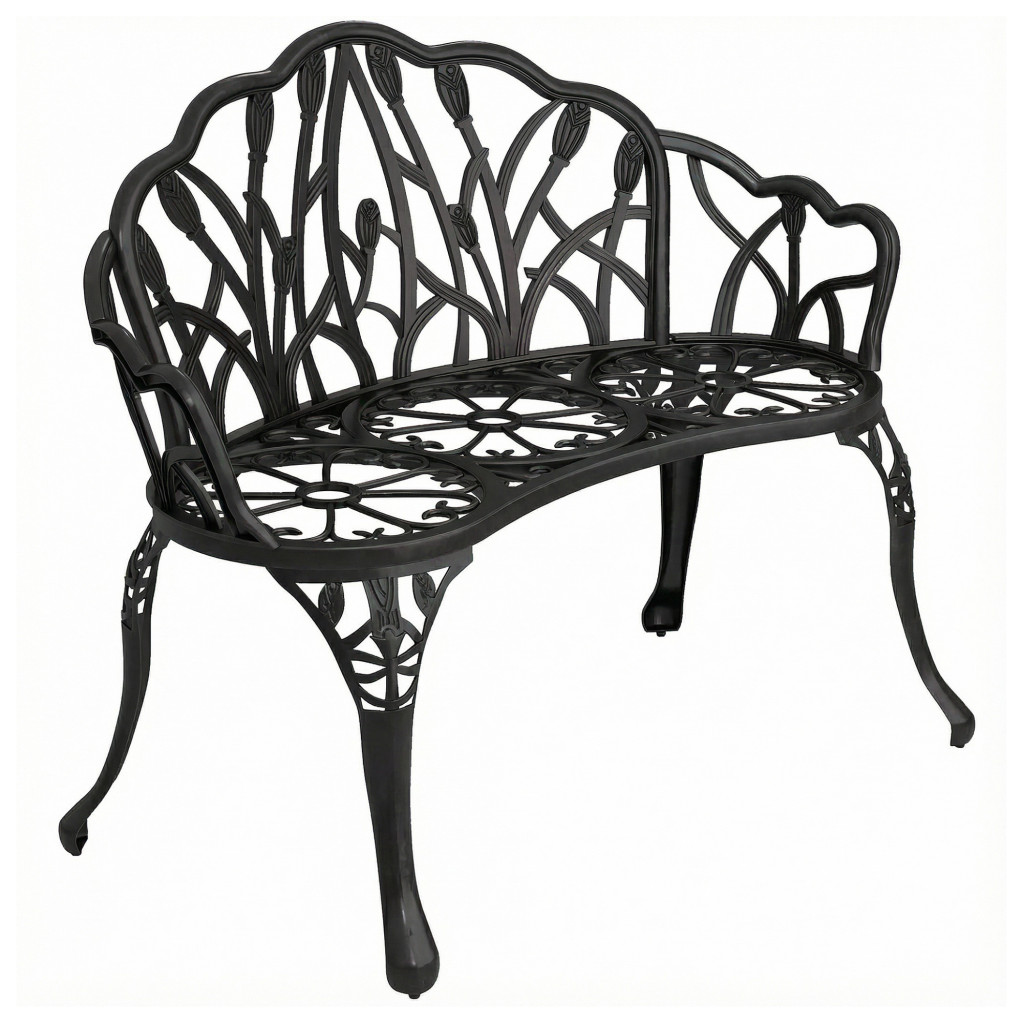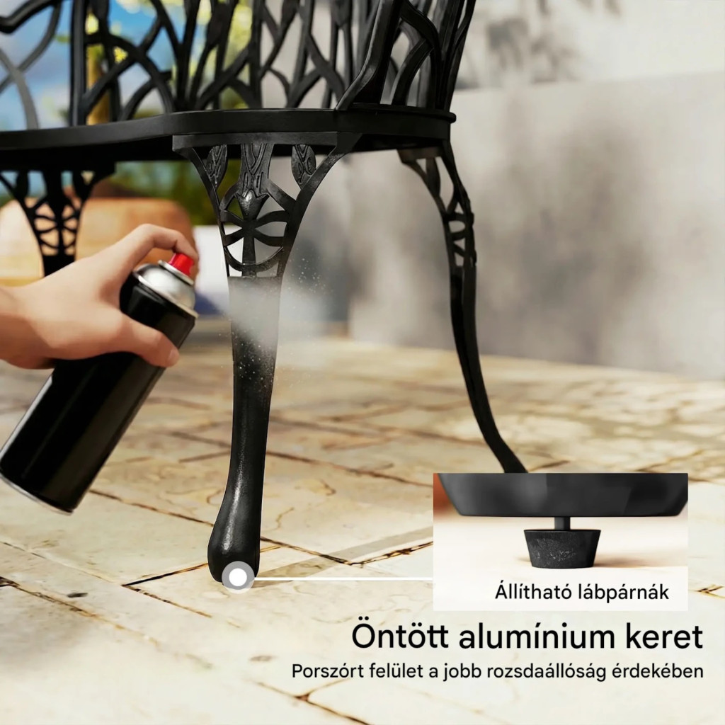 Kerti pad 2 személyes 99x57x78 cm öntött alumínium kerti pad virág mintával, fekete
