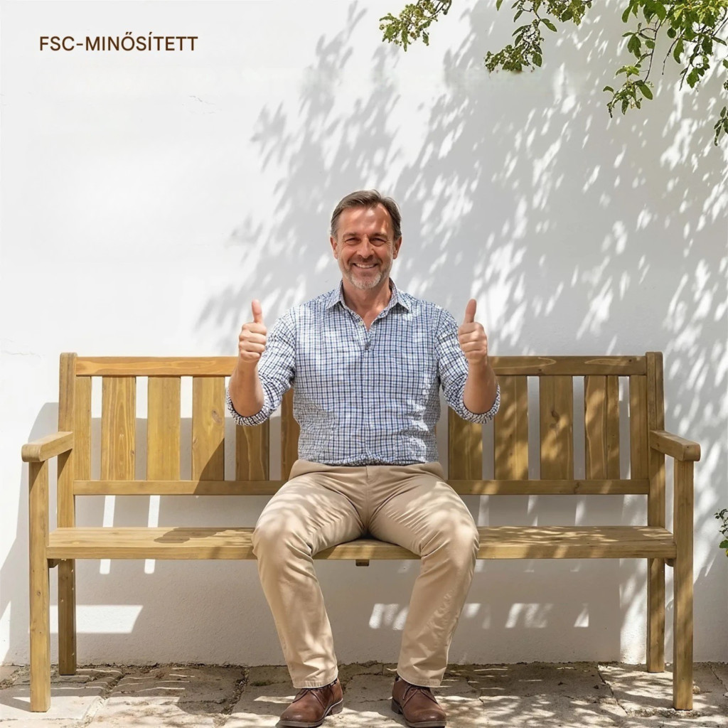 A kerti pad FSC minősített fából készült, amely garantálja a felelős erdőgazdálkodásból származó alapanyagot, így környezettudatos választás.