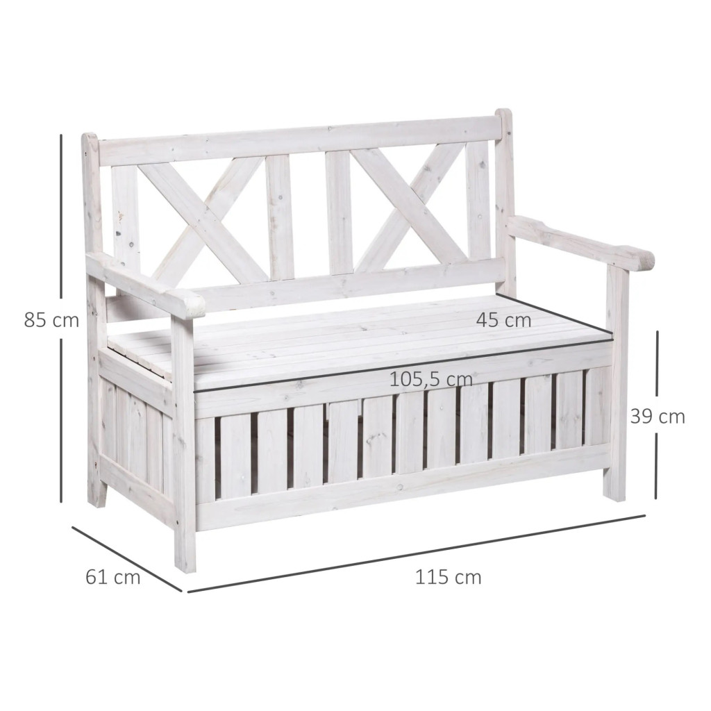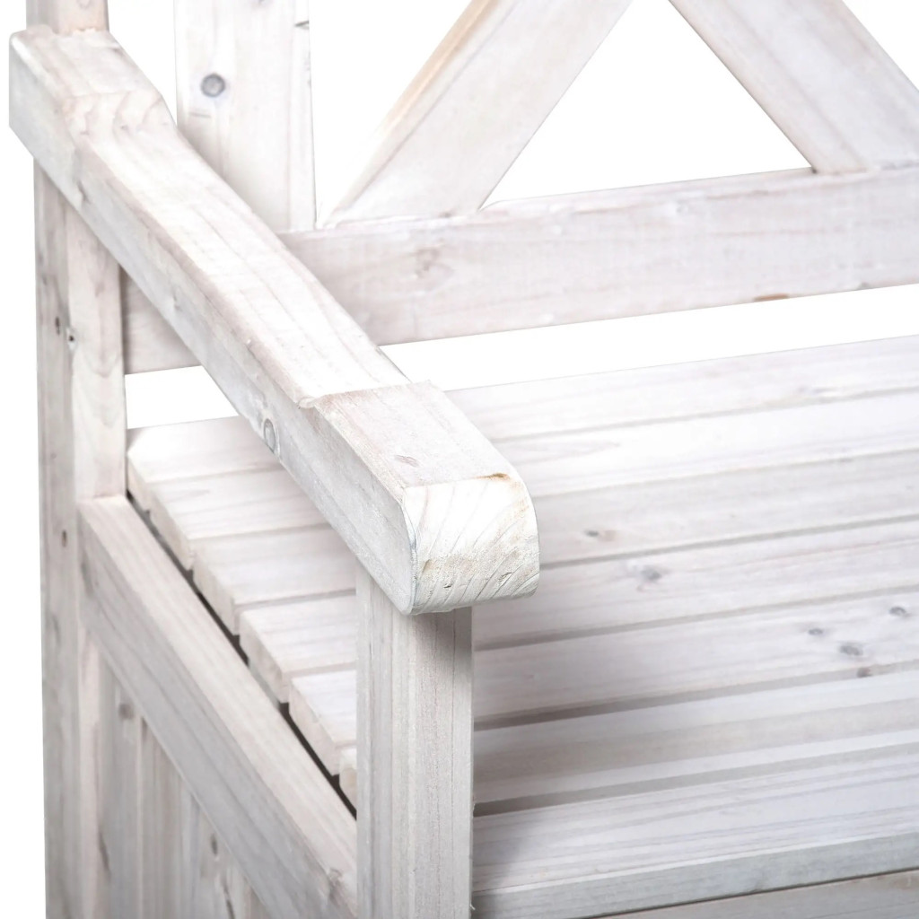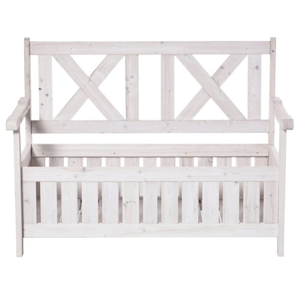 A letisztult fehér szín elegáns és modern megjelenést biztosít, így ez a fa kerti pad tárolóval könnyedén illeszkedik bármilyen kertbe vagy teraszra.