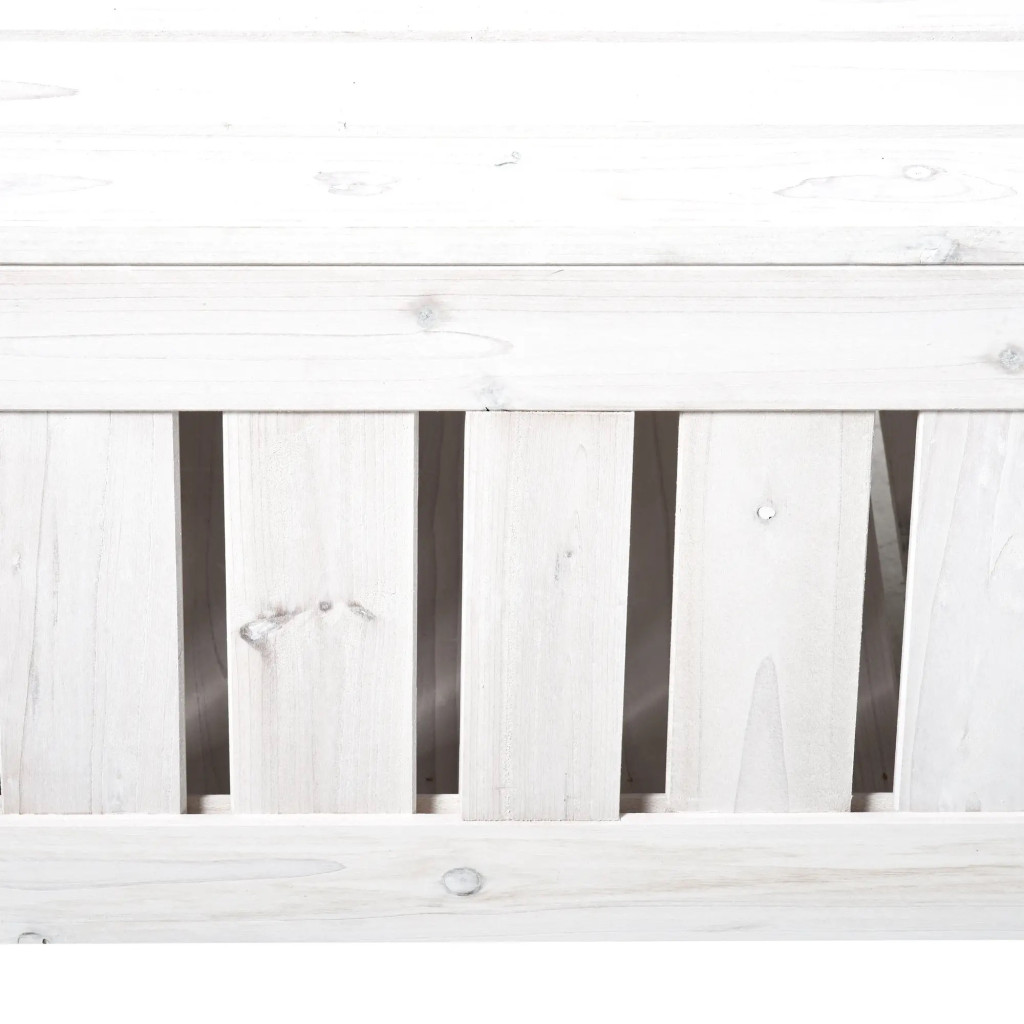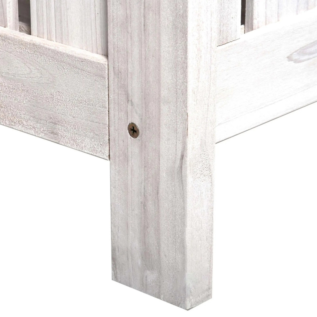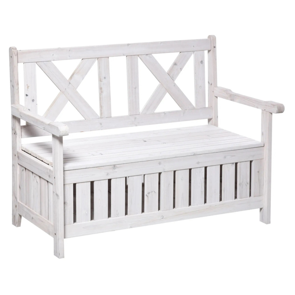A letisztult fehér szín elegáns és modern megjelenést biztosít, így ez a fa kerti pad tárolóval könnyedén illeszkedik bármilyen kertbe vagy teraszra.