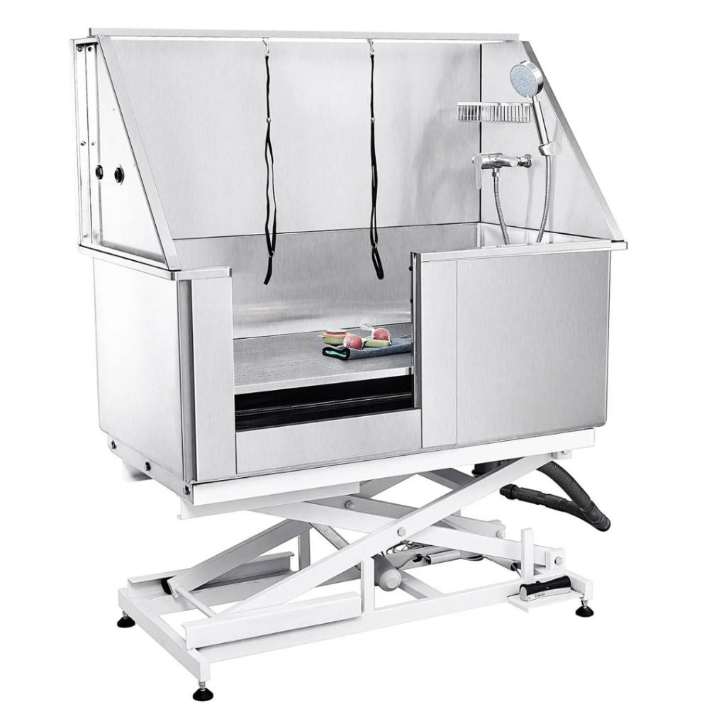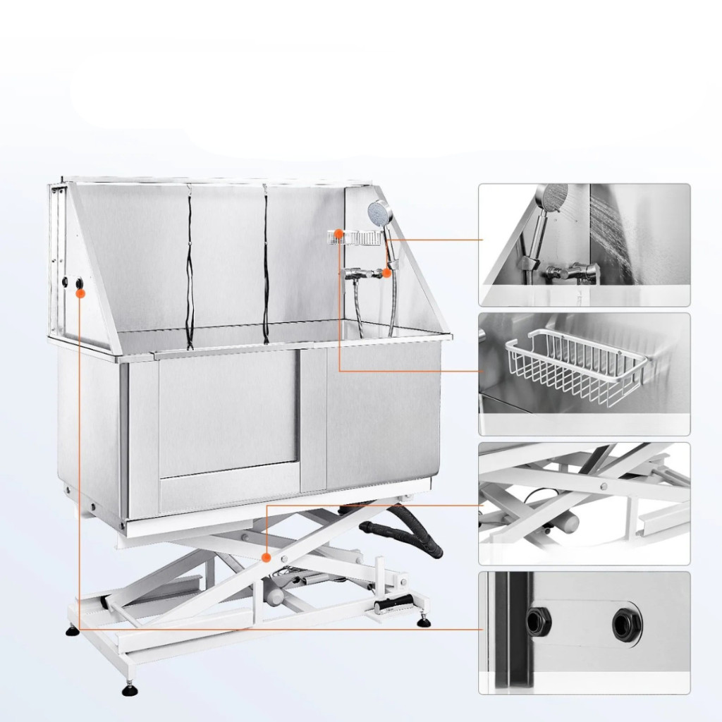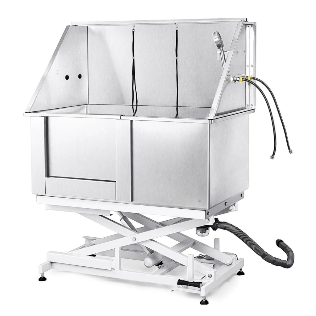 A professzionális kutyafürdető kád új szintre emeli a háziállatok tisztítását és ápolását. Az elektromosan állítható magasságú rozsdamentes acél kutyakozmetikai kád ideális választás kutyakozmetikákba, állatorvosi rendelőkbevagy akár otthoni használatra is. Robusztus, 1,8 mm vastag karbonacél váza akár 150 kg teherbírásra képes, így a legkisebb és a legnagyobb testű kutyák is kényelmesen és biztonságosan fürdethetők benne.