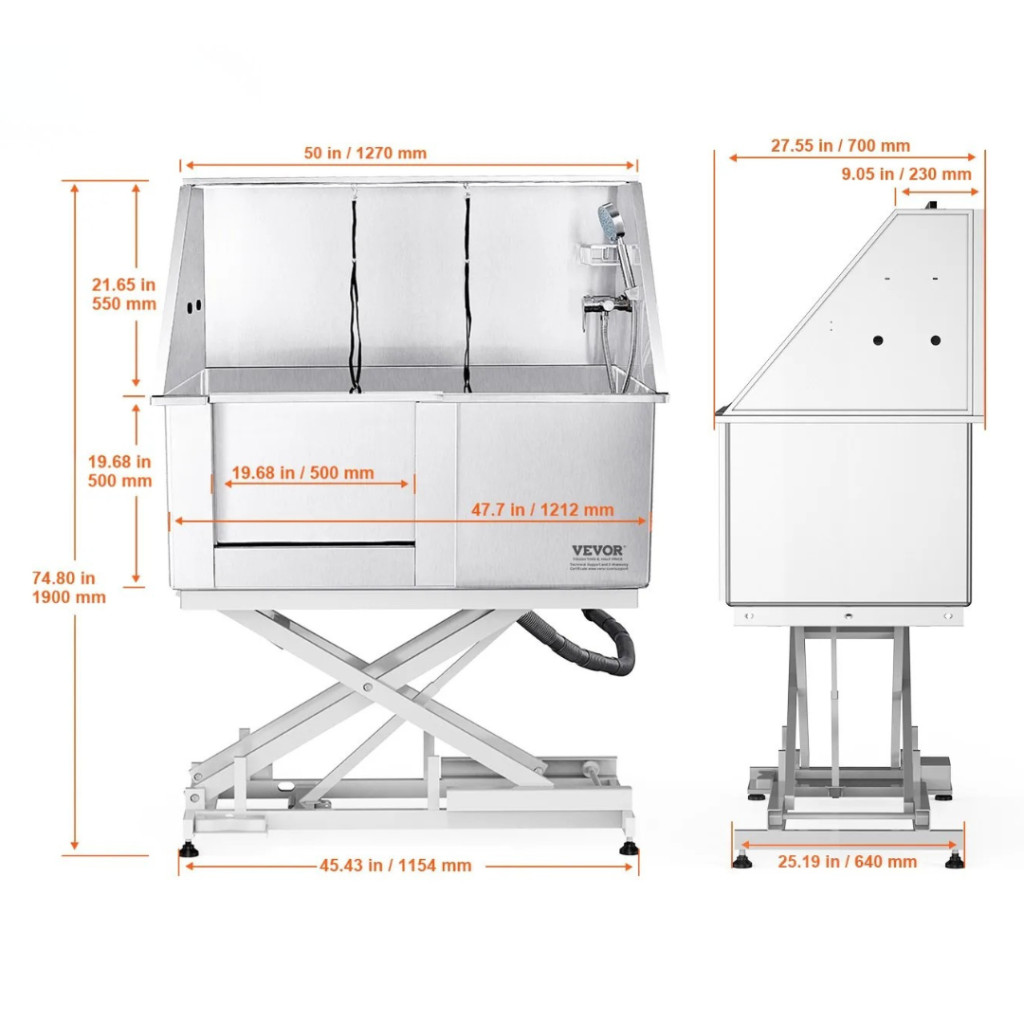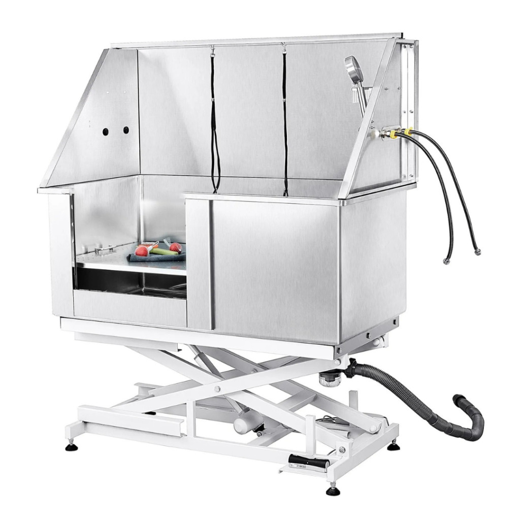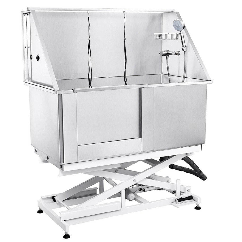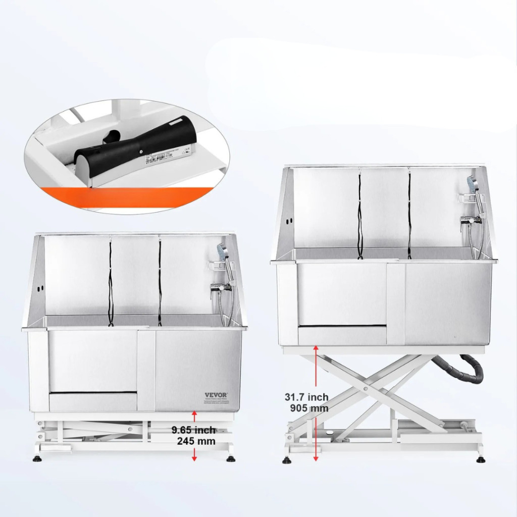 A professzionális kutyafürdető kád új szintre emeli a háziállatok tisztítását és ápolását. Az elektromosan állítható magasságú rozsdamentes acél kutyakozmetikai kád ideális választás kutyakozmetikákba, állatorvosi rendelőkbevagy akár otthoni használatra is. Robusztus, 1,8 mm vastag karbonacél váza akár 150 kg teherbírásra képes, így a legkisebb és a legnagyobb testű kutyák is kényelmesen és biztonságosan fürdethetők benne.
