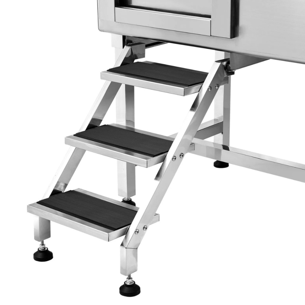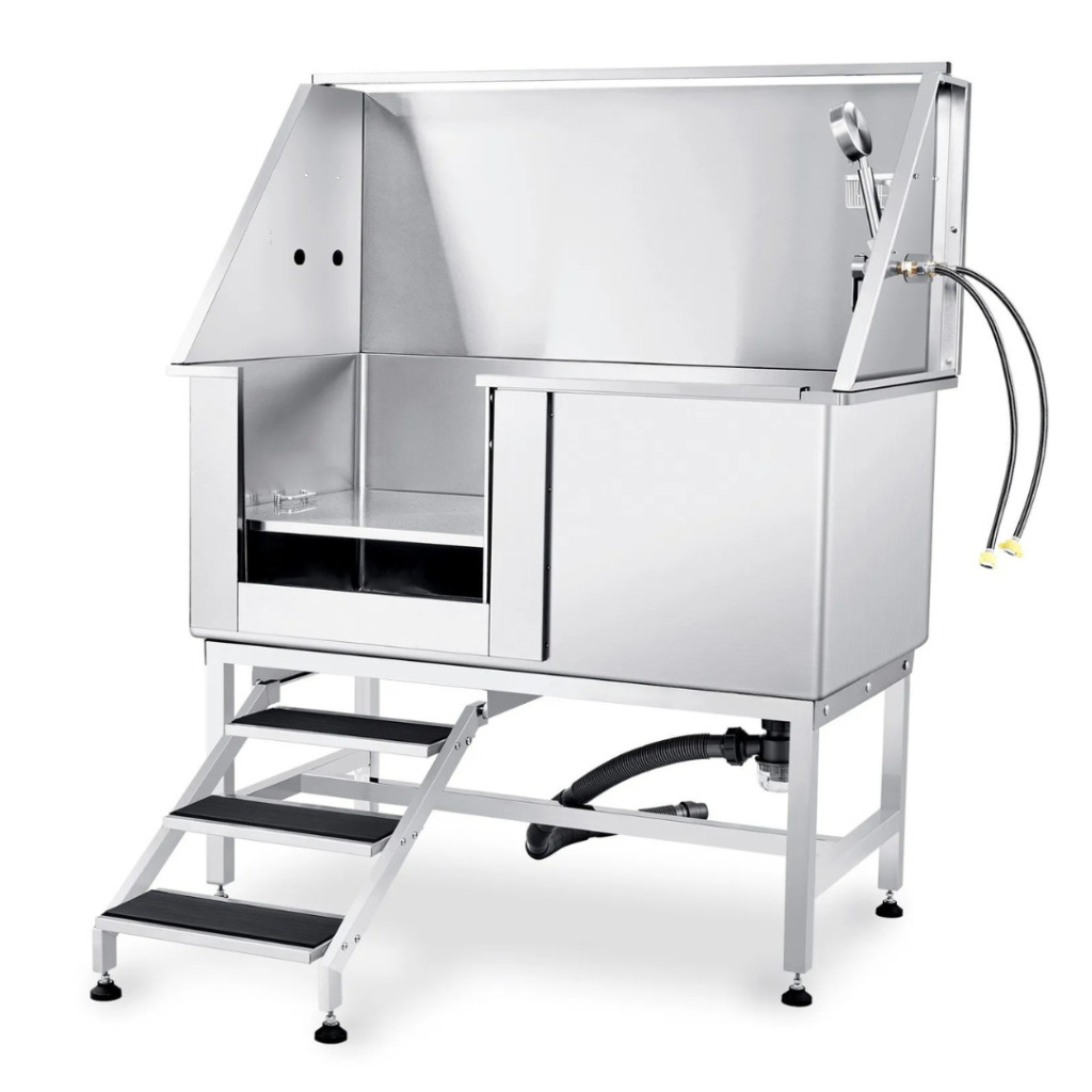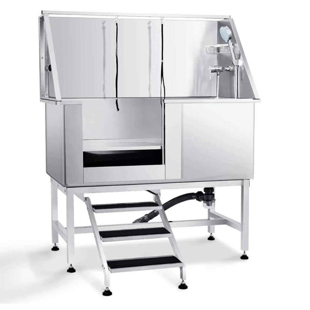 A professzionális kutyafürdető kád ideális megoldás minden kutyakozmetikus, állatorvosi rendelő vagy igényes házi kedvenc-tulajdonos számára, aki a mindennapi fürdetést kényelmesebben, biztonságosabban és hatékonyabban szeretné elvégezni. A rozsdamentes acél kutyakozmetikai kád erős, stabil és hosszú élettartamú kialakítása akár 150 kg teherbírást is lehetővé tesz, így a kis testű fajtáktól egészen a nagytestű kutyákig mindenki számára alkalmas.