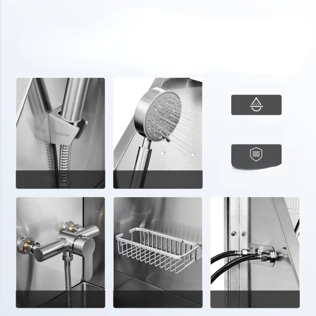 A rozsdamentes acél kutyakozmetikai kád előre szerelt elemekkel érkezik, így néhány lépésben, könnyedén összeállítható. Az alkatrészek precízen illeszkednek egymáshoz, ami stabil és megbízható szerkezetet eredményez.