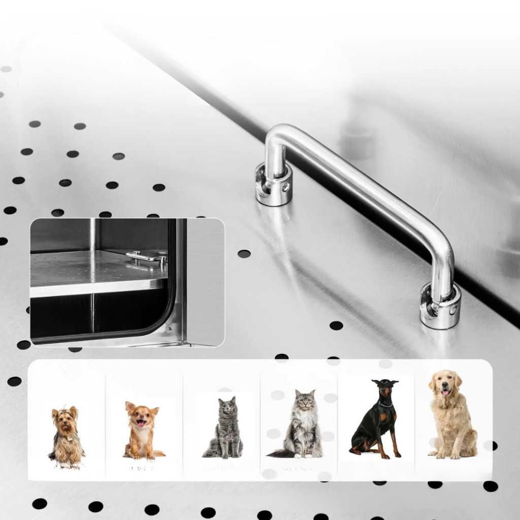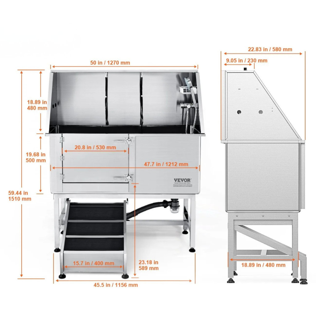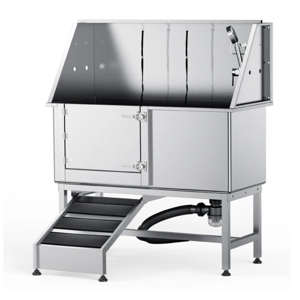 A professzionális kutyafürdető kád ideális választás minden kutyakozmetikus, állatorvos vagy igényes házi kedvenc-tulajdonos számára, aki biztonságos, kényelmes és higiénikus megoldást keres kedvence tisztítására. A rozsdamentes acél kutyakozmetikai kád erős, strapabíró kialakításának köszönhetően akár 150 kg-os kutyákhoz is tökéletes, így kis, közepes és nagytestű állatok egyaránt kényelmesen fürdethetők benne.