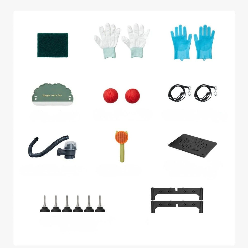 A kutyakozmetikai kád praktikus kialakítása mindent tartalmaz, ami a gyors és kényelmes fürdetéshez szükséges: