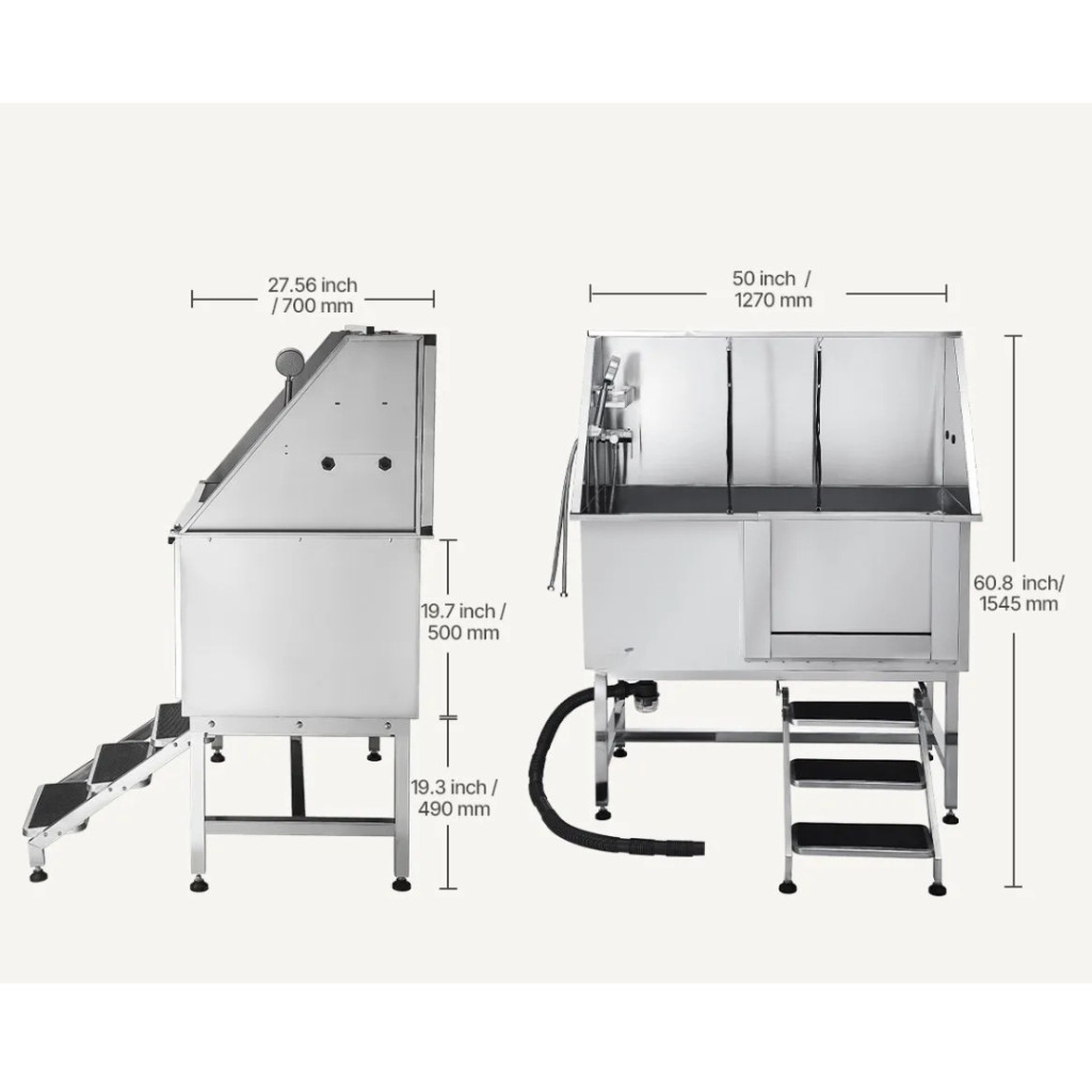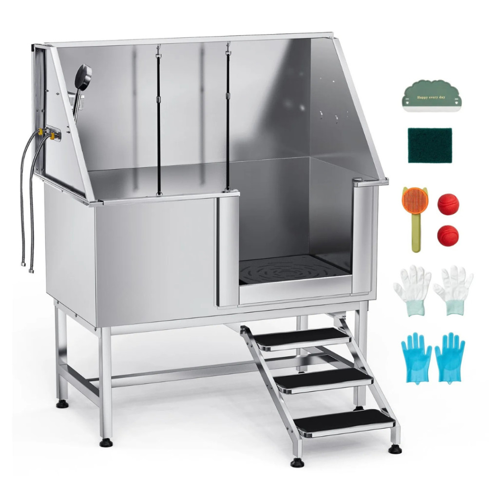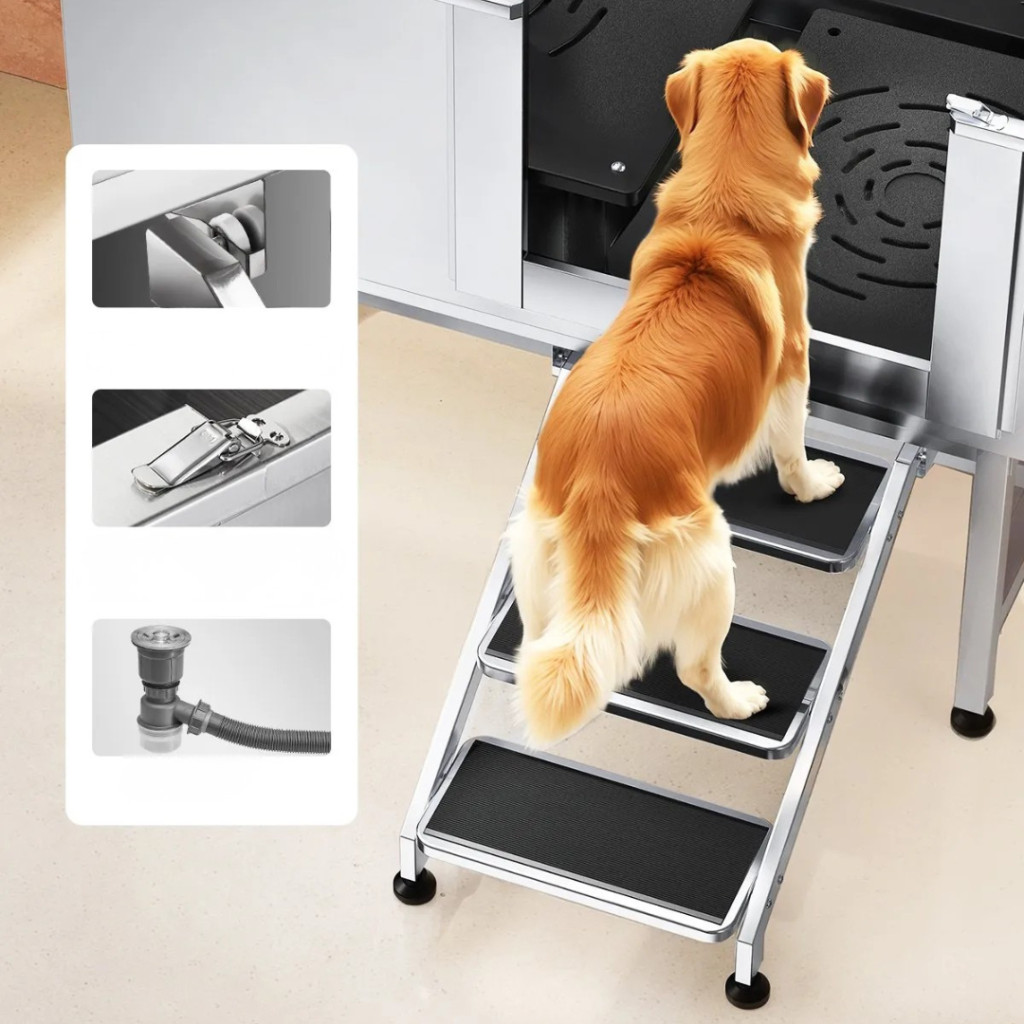 A 1270×700×1545 mm-es méretével, 150 kg teherbírásával és 304-es rozsdamentes acél szerkezetével ez a kád ideális kis-, közepes- és nagytestű kutyák számára is.