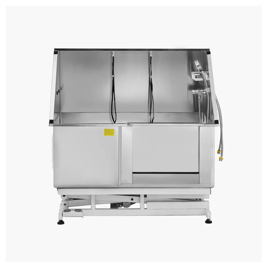 A 127 cm széles, 304-es rozsdamentes acél kád elektromosan emelhető, így a fürdetési magasság 134 és 190 cm között állítható – hajolgatás nélkül, ergonomikusan és kényelmesen dolgozhat.