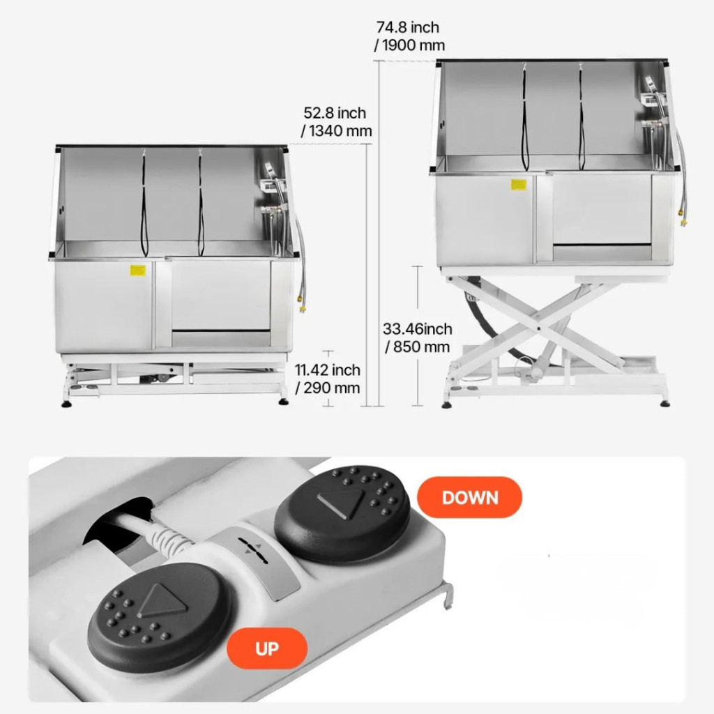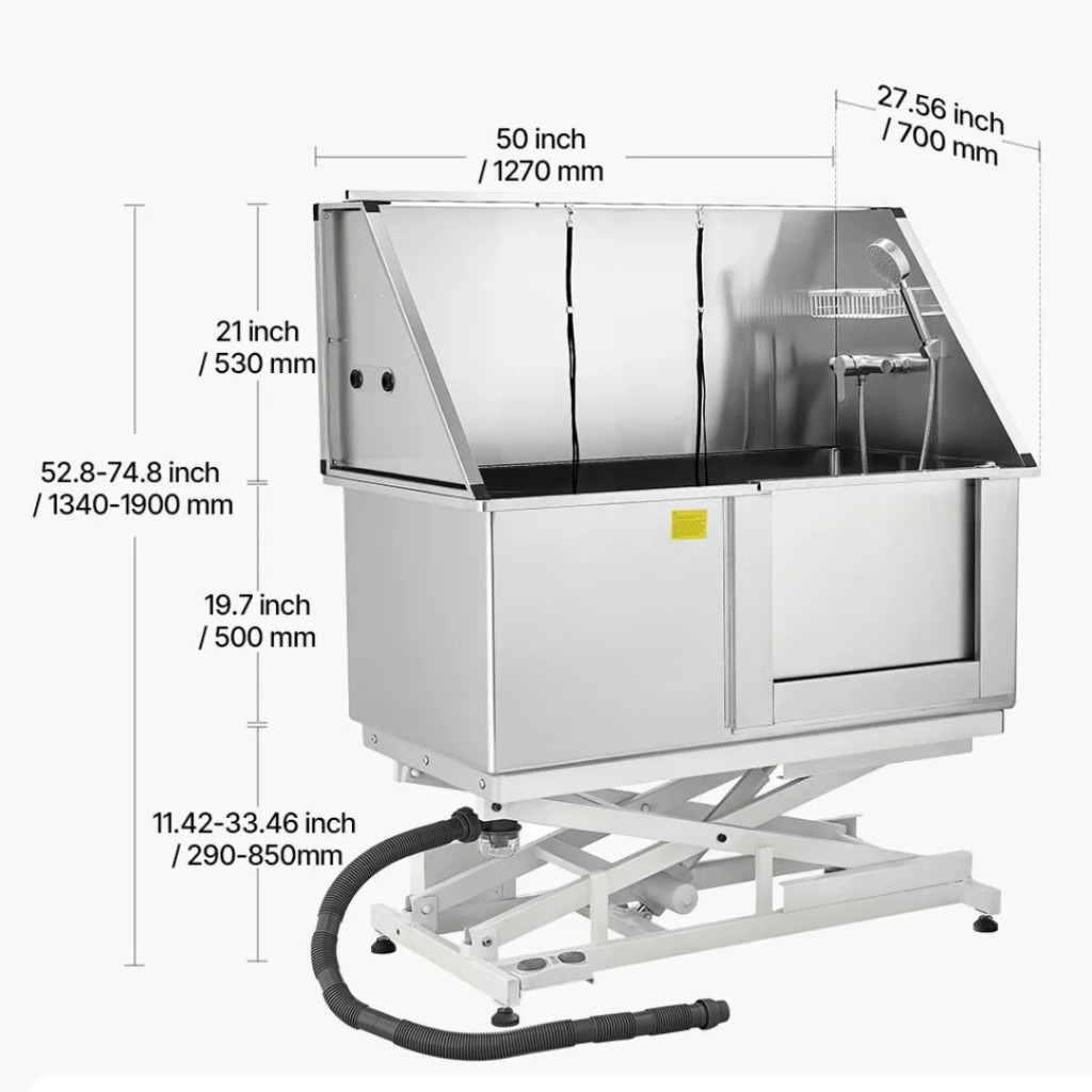 Ez a professzionális, elektromos emelős kutyafürdető állomás a modern kutyakozmetikai szalonok és igényes háziállat-tulajdonosok számára készült, akik a biztonságot, kényelmet és hatékonyságot egyetlen készülékben keresik.