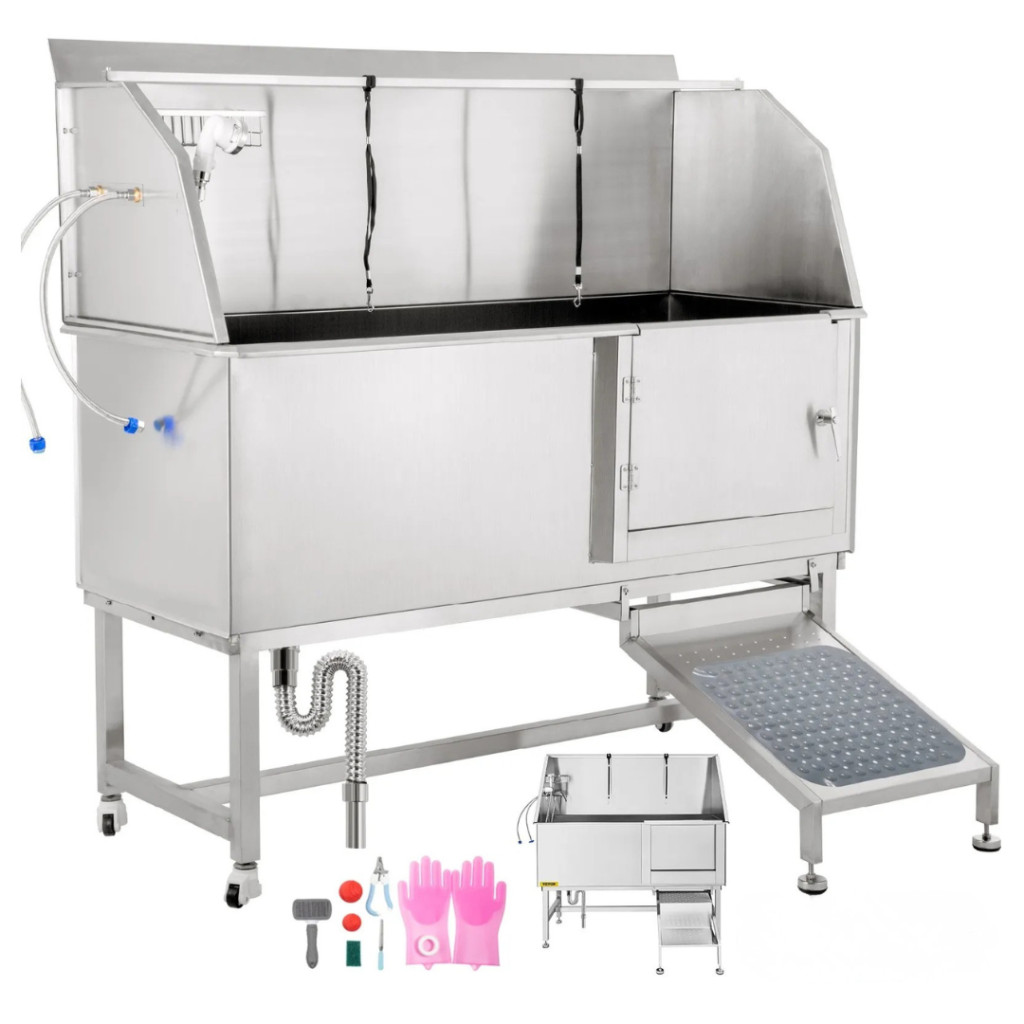 Kutyafürdető kád rozsdamentes acél 150,4x70,3x147cm kutyakozmetikai kád 300 kg teherbírású