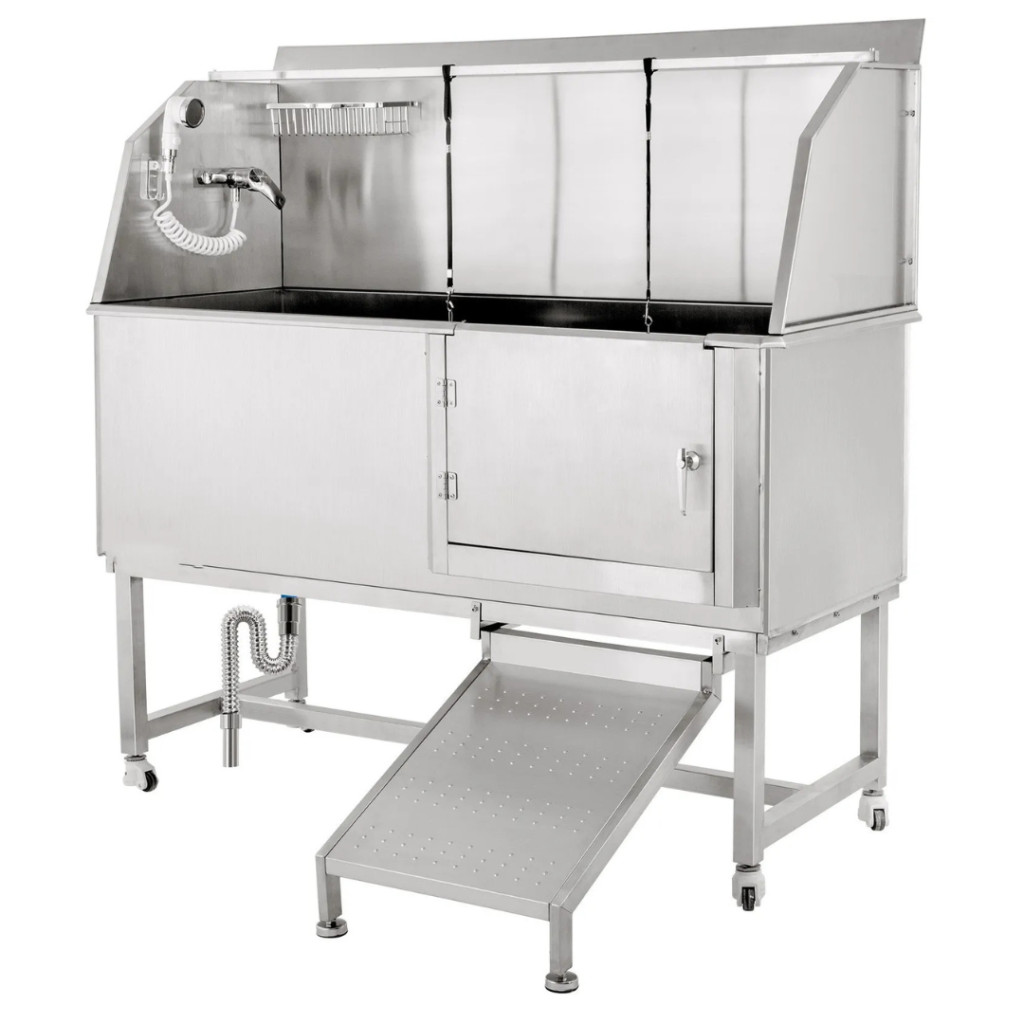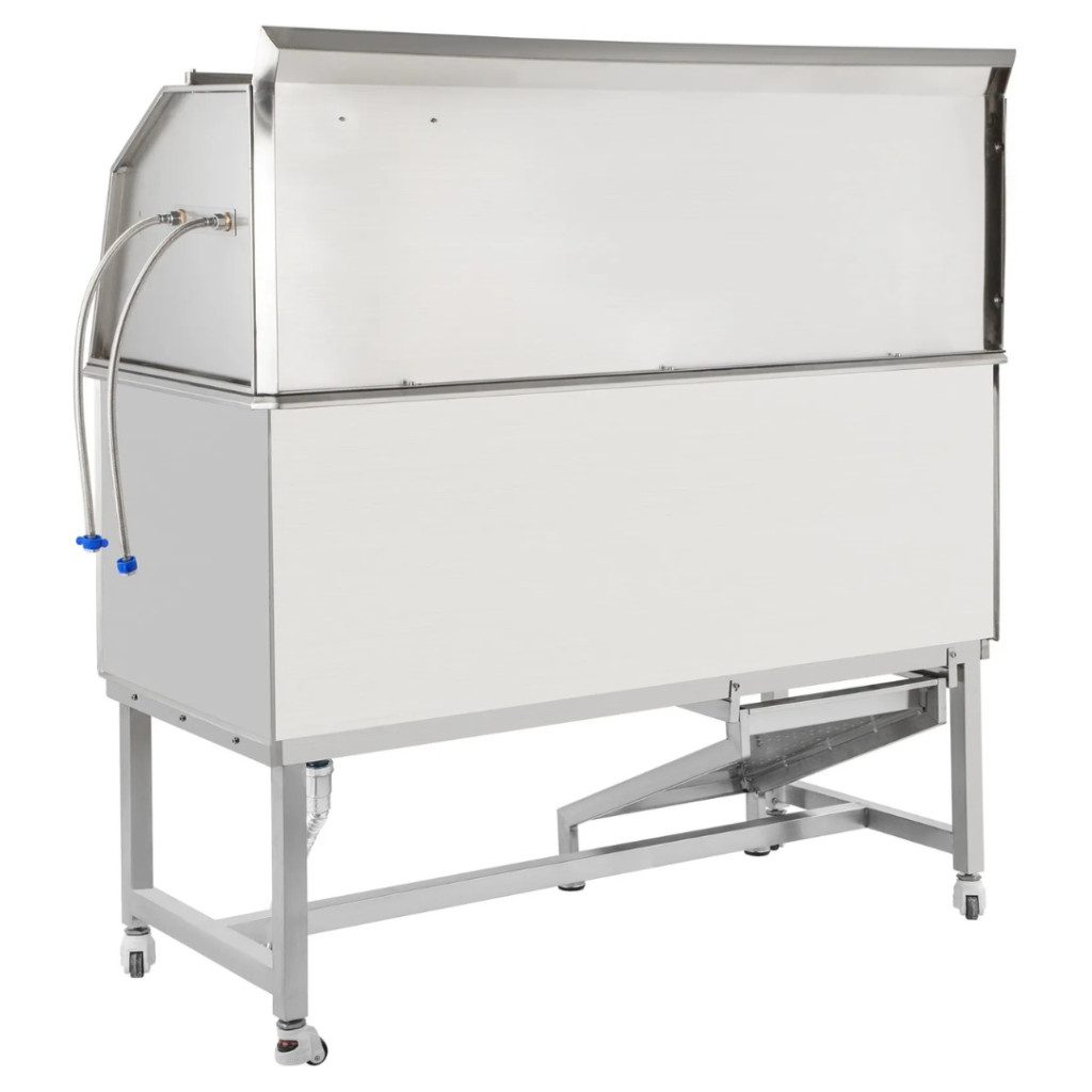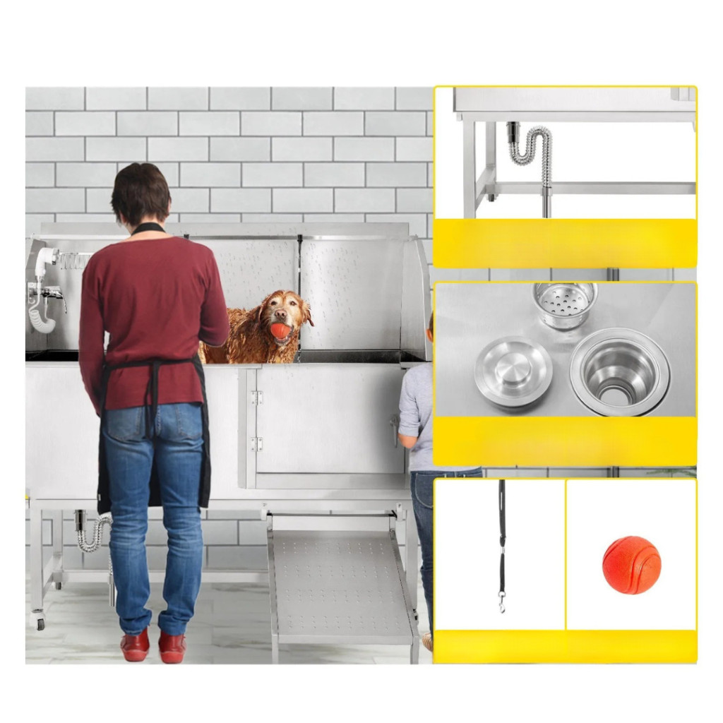 A 304-es rozsdamentes acél anyag garantálja a hosszú élettartamot, a rozsdamentes felület pedig ellenáll a deformálódásnak és karcolásnak. A hegesztett, egyrészes kialakítás megakadályozza a víz szivárgását, így ideális választás intenzív, mindennapos használatra. Könnyen tisztítható, fertőtleníthető és higiénikus – ami nélkülözhetetlen bármely kutyakozmetikai kád esetében.