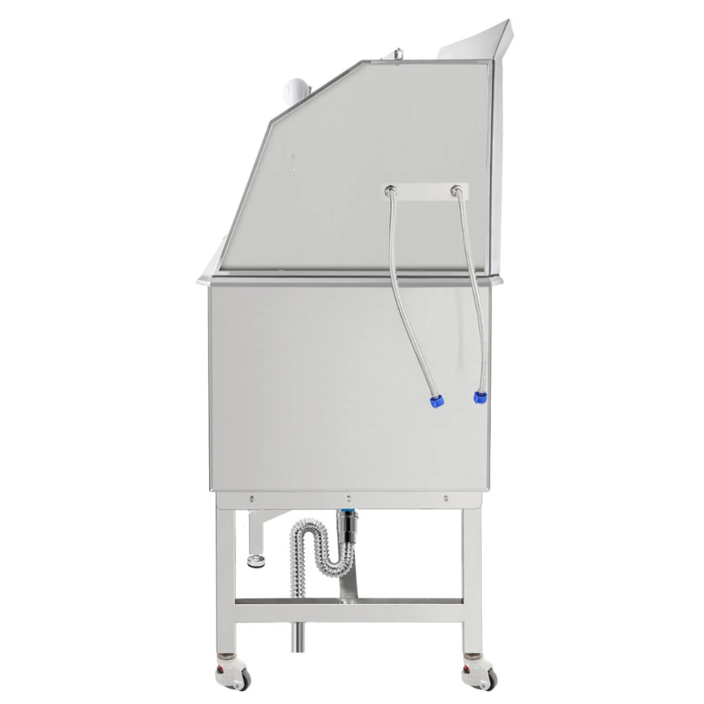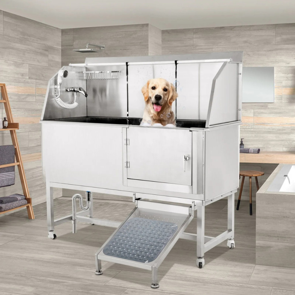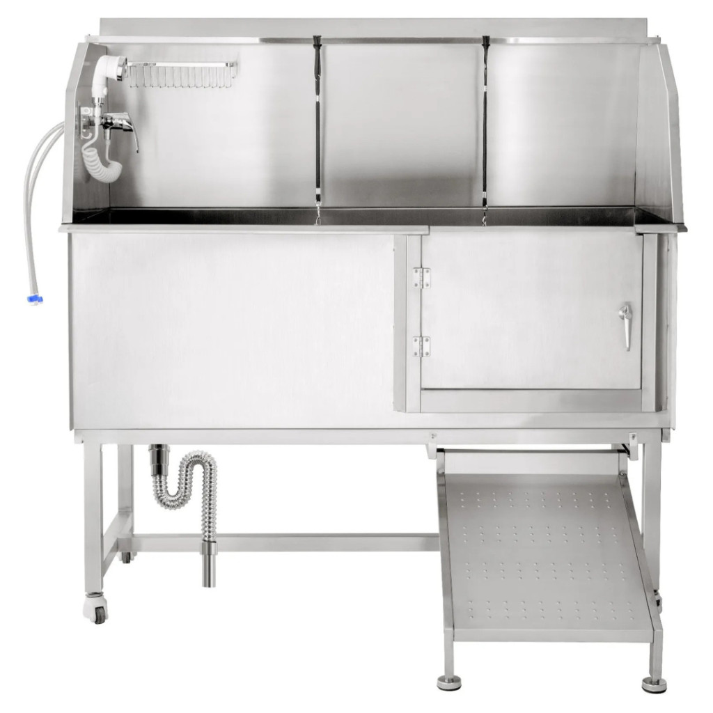 A 304-es rozsdamentes acél anyag garantálja a hosszú élettartamot, a rozsdamentes felület pedig ellenáll a deformálódásnak és karcolásnak. A hegesztett, egyrészes kialakítás megakadályozza a víz szivárgását, így ideális választás intenzív, mindennapos használatra. Könnyen tisztítható, fertőtleníthető és higiénikus – ami nélkülözhetetlen bármely kutyakozmetikai kád esetében.