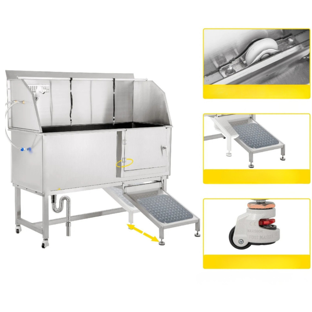 A rozsdamentes acél kutyakozmetikai kád a legjobb választás mindazok számára, akik professzionális kutyafürdető kádat keresnek otthoni, állatorvosi vagy kozmetikai használatra. A prémium 304-es rozsdamentes acélból készült, nagy teherbírású szerkezet akár 300 kg súlyú háziállat fürdetését is lehetővé teszi. Ez a kutyamosó kád a megbízhatóság, a higiénia és a kényelem tökéletes egyensúlyát kínálja – mindezt modern, esztétikus megjelenéssel.