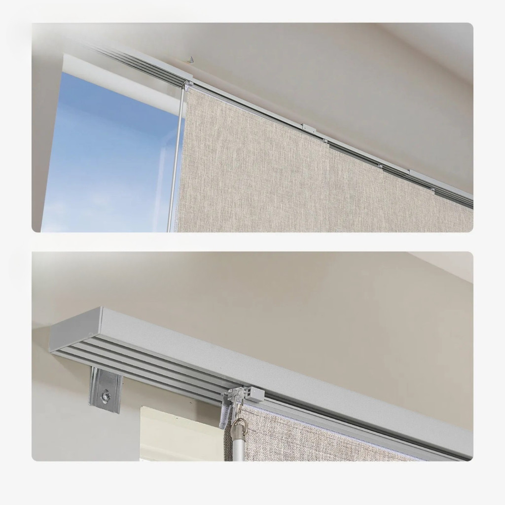 Sötétítő szalagfüggöny állítható sínnel 116–218 cm, méretre vágható panelek 243 cm magasságig barna
