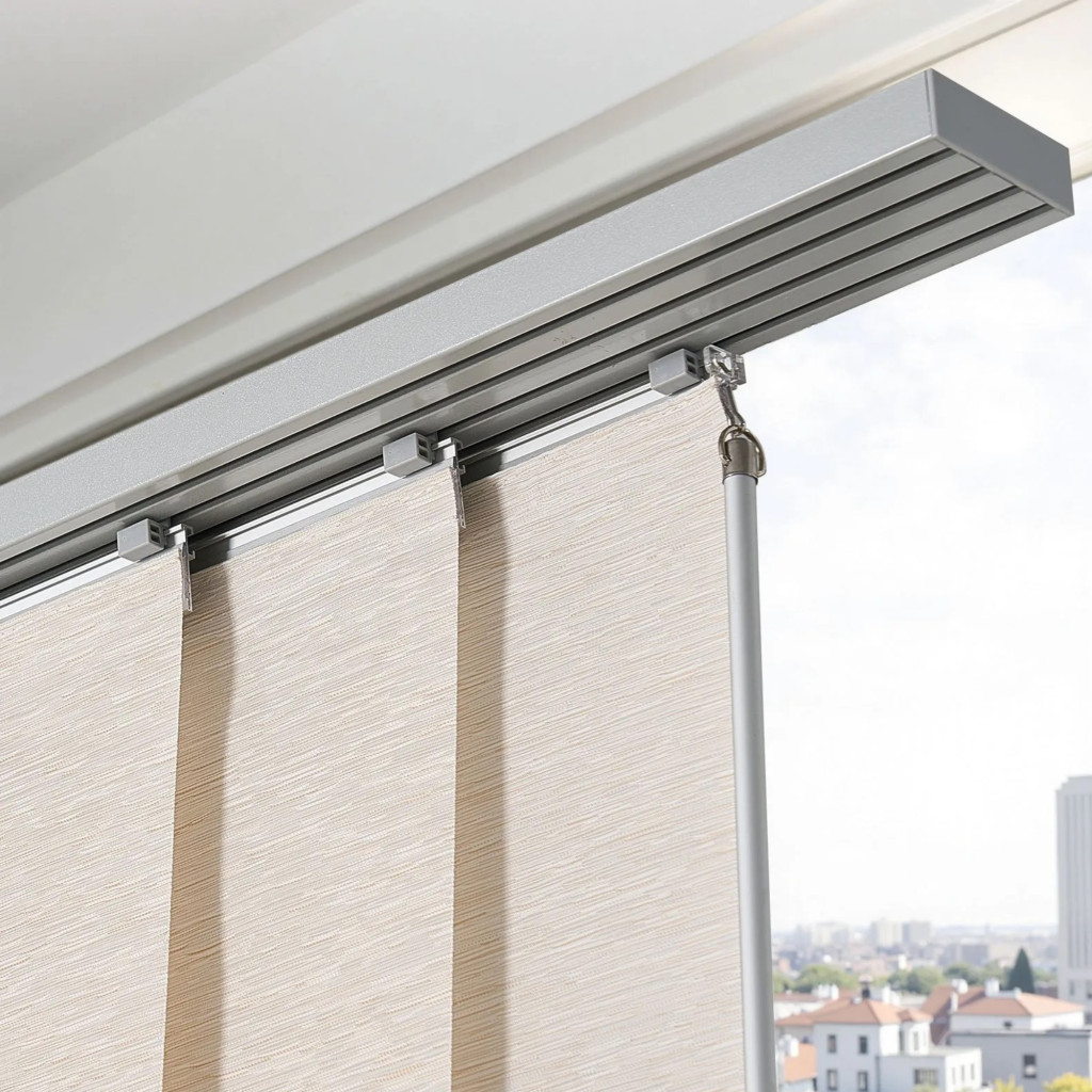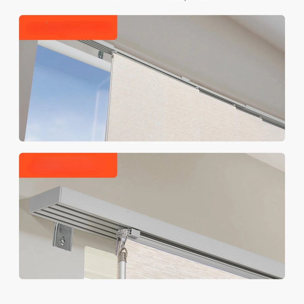 A csendes csúszósínes rendszer lehetővé teszi, hogy a paneleket balra vagy jobbra tolja, így a fény mennyisége mindig az aktuális igényekhez igazítható. A felső takaróelem diszkréten elrejti a sínt, ami egységes, prémium megjelenést kölcsönöz a teljes szalagfüggöny rendszernek.