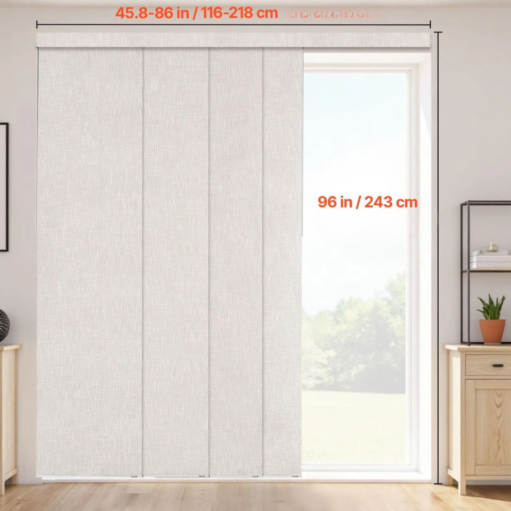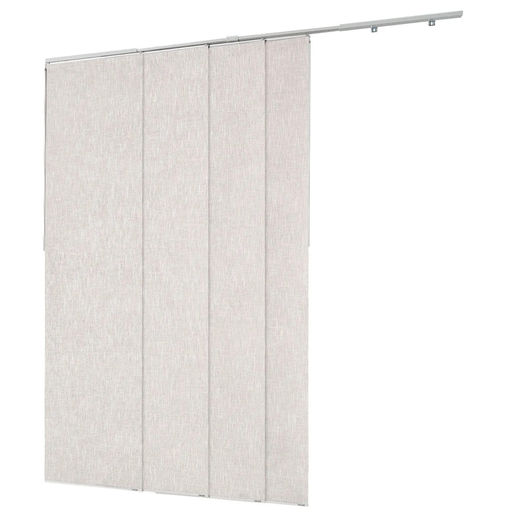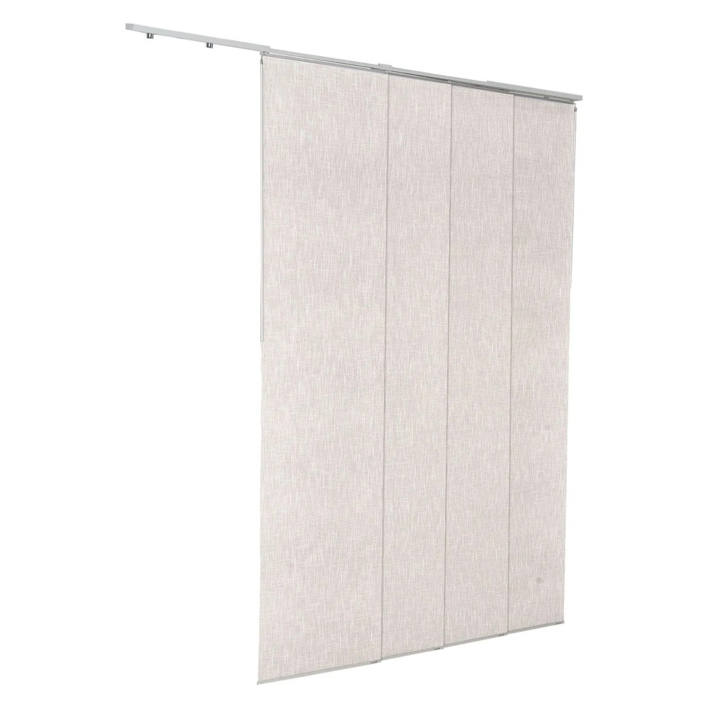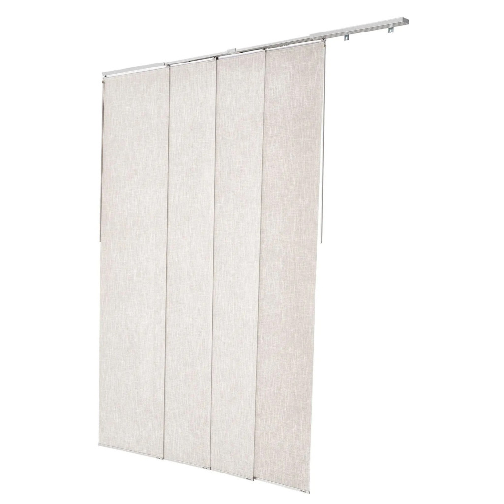 Az állítható alumínium sínrendszer 116–218 cm szélességtartományban használható, így többféle nyílászáróhoz és térkialakításhoz is rugalmasan alkalmazható. A panelek egyedileg méretre vághatók, maximum 243 cm magasságig, ezért a szalagfüggöny pontosan illeszthető az adott helyiség adottságaihoz.