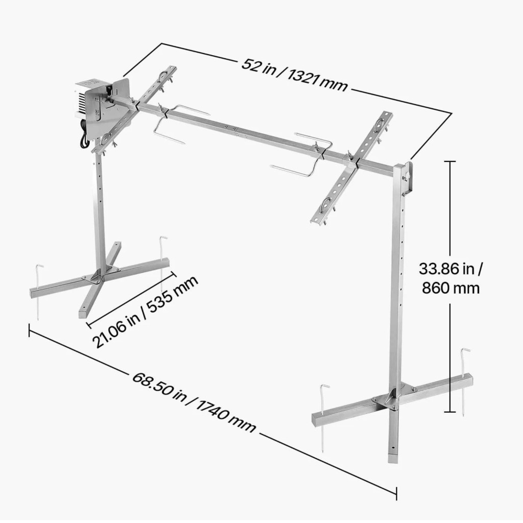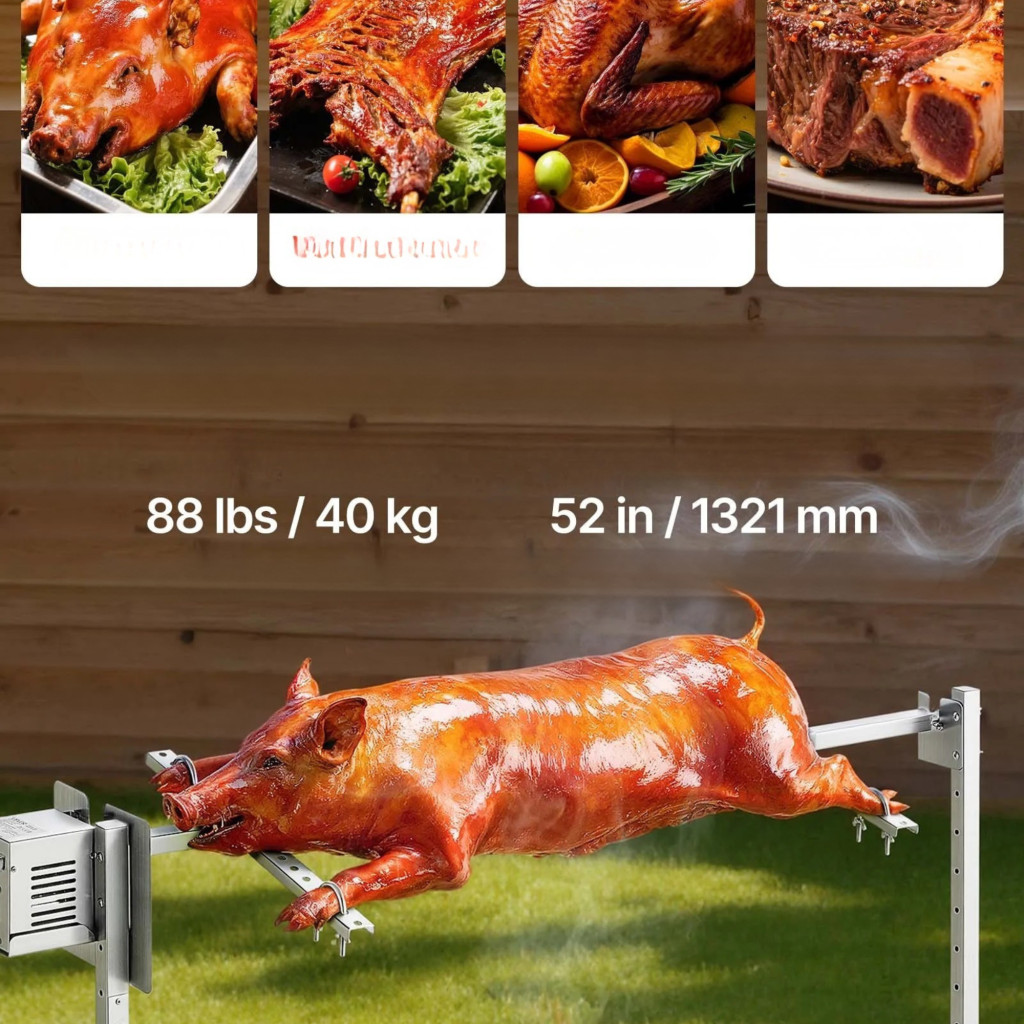 Forgónyársas grill 38W egész malac és bárány sütéséhez, 132 cm, 40 kg teherbírás