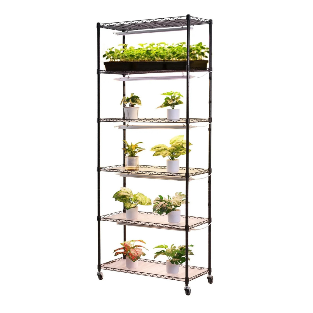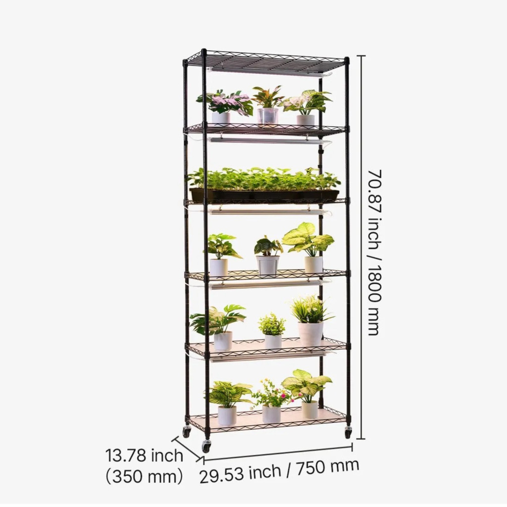 Ha Ön hatékony megoldást keres beltéri növényneveléshez, palánták indításához vagy mikrozöldek termesztéséhez, ez a modern növényállvány LED növénylámpával kiváló választás lehet. A praktikus kialakítású 6 szintes növénynevelő állvány elegendő helyet biztosít különböző növények számára, miközben a beépített világítás optimális növekedési feltételeket teremt.