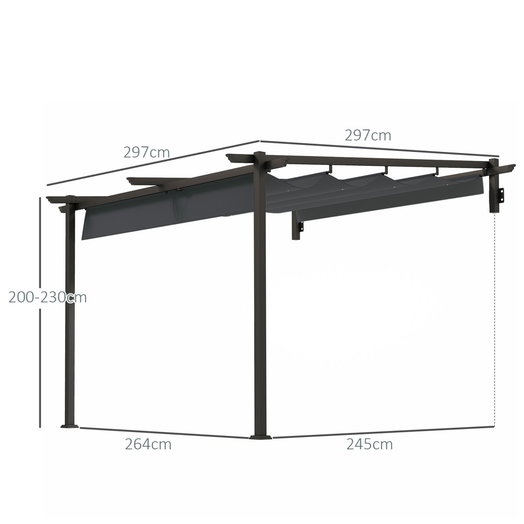 Pergola 300x300 cm falhoz rögzíthető pergola állítható tetővel szélálló kivitel, sötétszürke