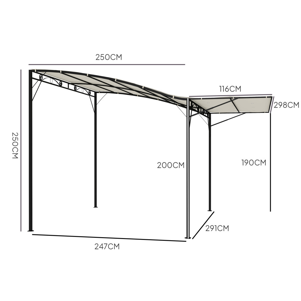 Ez a 3 x 2,5 méteres pergola lehajtható tetőbővítéssel ideális választás, ha Ön elegáns, ugyanakkor praktikus megoldást keres teraszára vagy kertjébe. A krémfehér kivitel világos, modern megjelenést biztosít, amely harmonikusan illeszkedik különböző kültéri stílusokhoz.