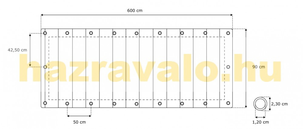 Fűzőlyukak: 28 darab (600 x 90 cm)