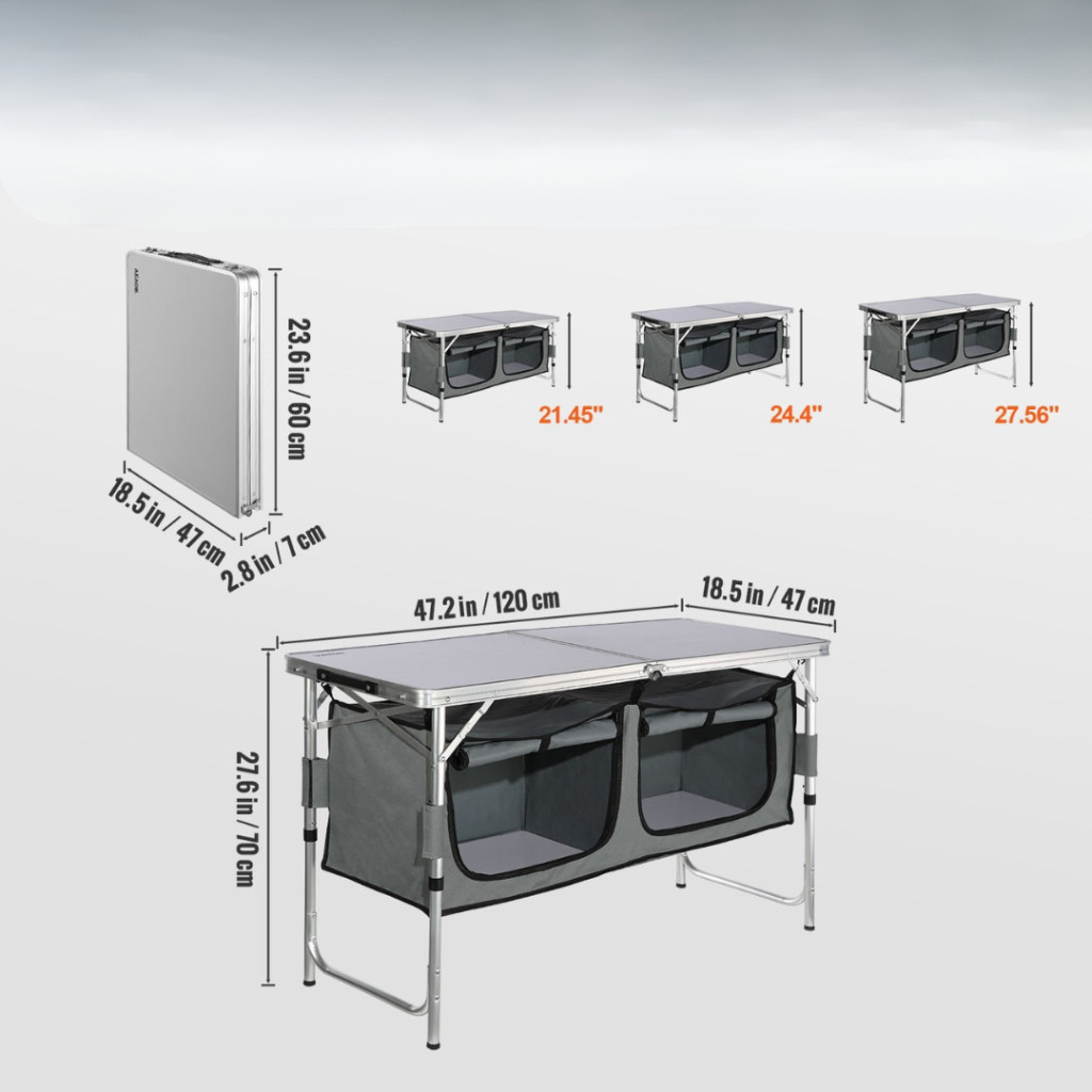 SÉRÜLT, HASZNÁLT! Hordozható kempingkonyha összecsukható konyha állítható magasságú, tárolórekeszes kialakítás