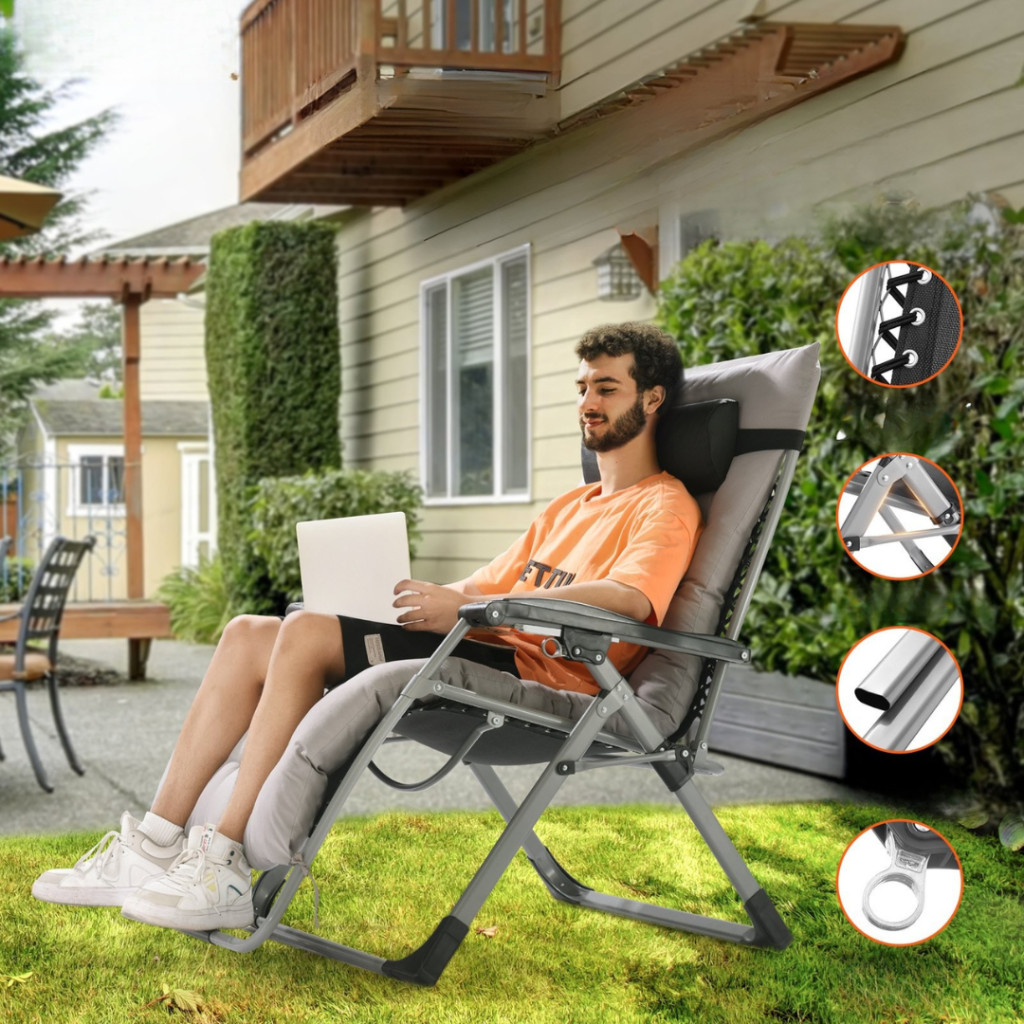 Engedje meg, hogy bemutassuk a szürke színű, összecsukható dönthető napozószéket, amelyet kifejezetten a kényelem és a teherbírás tökéletes egyensúlyára terveztek. Az extra széles kialakítás, a 90° és 170° között dönthető háttámla, valamint a ~10 cm vastag párnázat minden helyzetben kényelmes és tehermentes pihenést biztosít – legyen szó kertben olvasásról, napozásról a teraszon vagy csillagnézésről a nyaralóban.