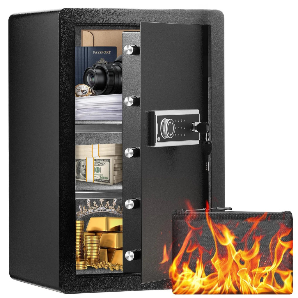 Egyajtós széf 99 literes digitális széf tűzálló pénztasakkal kulcsos és kódos nyitással