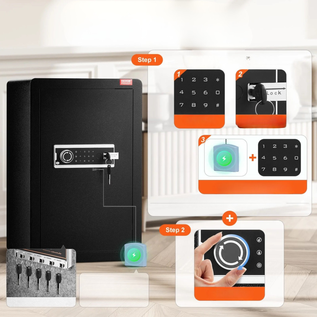 Ez a 99 literes digitális pénzszéf megbízható, nagy kapacitású és jól rendszerezhető megoldás értéktárgyai biztonságos tárolására.